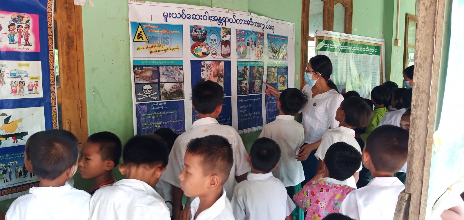 ယင်းနောက် ကျောင်းသား၊ ကျောင်းသူများ ပြင်ပဗဟုသုတရရှိစေရန် မူးယစ်ဆေးဝါး အန္တရာယ်နှင့် ကာကွယ်တားဆီးရေး၊ လူကုန်ကူးမှုဖြစ်ပေါ်စေတဲ့ အခြေခံအကြောင်းရင်းများ၊ လူကုန်ကူးမှုကို ဖြစ်စေတတ်သော အင်္ဂါရပ်များနှင့် လူကုန်ကူးသူများအား အရေးယူနိုင်သည့် ပြစ်ဒဏ်များအကြောင်း၊ ယာဉ်စည်းကမ်းလမ်းစည်းကမ်းနှင့်ပတ်သက်သည့် လိုက်နာရမည့် စည်းမျဉ်းများ၊ သဘာဝဘေးအန္တရာယ်ကျရောက်လာပါက ကာကွယ်ရမည့်နည်းလမ်းများ အစရှိသည့် စိတ်ဝင်စားဖွယ်နံရံကပ်စာစောင်များကိုပြသခဲ့ရာ ကျောင်းသား၊ ကျောင်းသူများက စိတ်၀င်တစားကြည့်ရှုလေ့လာ မှတ်သားခဲ့ကြောင်း သိရသည်။