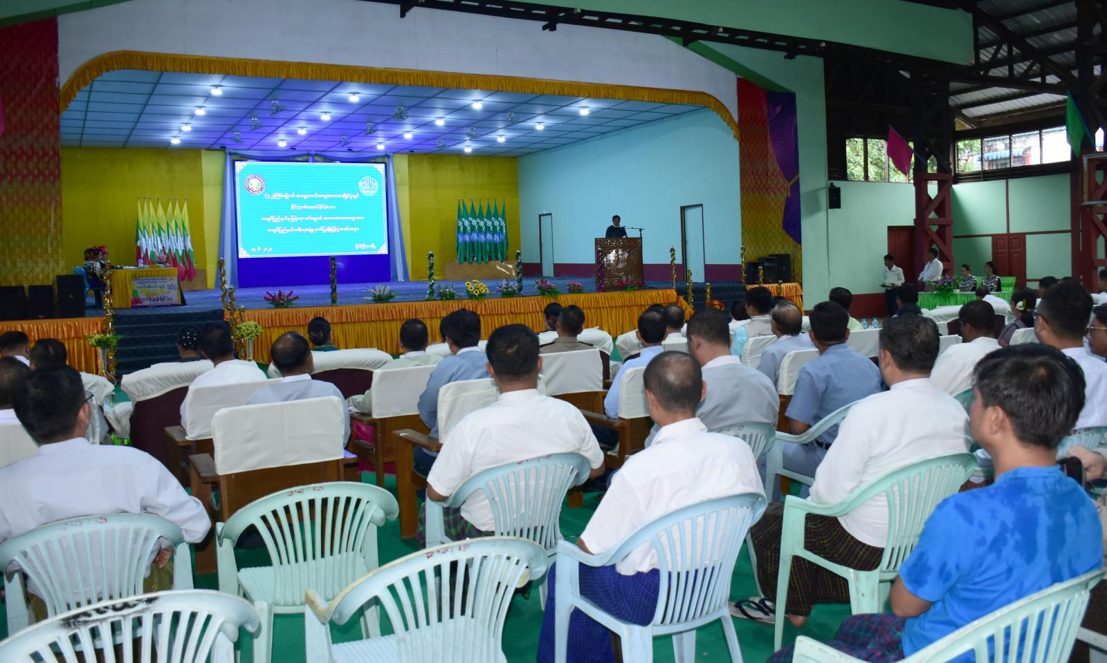 (၃၂)ကြိမ်မြောက် အရှေ့တောင်အာရှ အားကစားပြိုင်ပွဲတွင် နိုင်ငံ့ဂုဏ်ဆောင်နိုင်ခဲ့ကြသည့် ကချင်ပြည်နယ်မှ မြန်မာ့လက်ရွေးစင်အားကစားသမားများအား ကချင်ပြည်နယ်အစိုးရအဖွဲ့က ဂုဏ် ပြုချီးမြှင့်ပွဲ အခမ်းအနားကို ဇွန် ၁၄ ရက် နံနက် ၁၀ နာရီက ပြည်နယ်ပြည်သူ့အားကစားကွင်းအတွင်း ရှိ မိုးလုံလေလုံအားကစားခန်းမ၌ ကျင်းပပြုလုပ်ရာ နိုင်ငံ့ဂုဏ်ဆောင်အားကစားသမားများက တစ်ဦးချင်းမိတ်ဆက်ကြသည်။