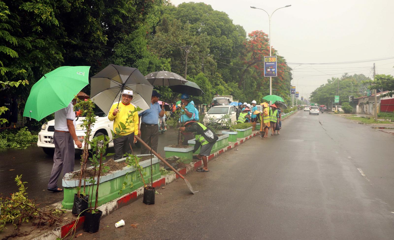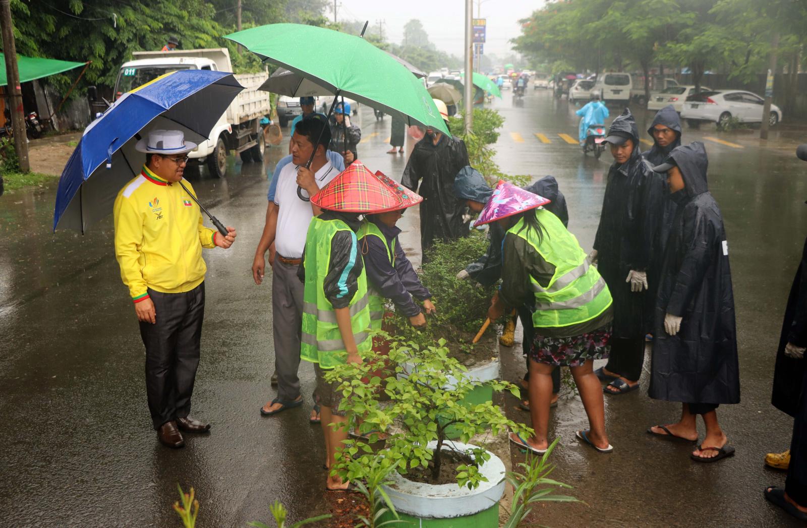 အလားတူ ပြည်နယ်ဝန်ကြီးချုပ်သည် ပြည်နယ်သယံဇာတရေးရာဝန်ကြီး ဦးတိန့်ဆောင်၊ မြို့နယ်စည်ပင်သာယာရေးအဖွဲ့ တာဝန်ရှိသူများနှင့်အတူ မြစ်ကြီးနားမြို့အား ပန်းမြို့တော်အဖြစ် အကောင်အထည်ဖော်ဆောင်ရွက်လျက်ရှိရာ မြစ်ကြီနားမြို့ အောက်နန်းရပ်ကွက်ရှိ တပင်ရွှေထီး လမ်းမတစ်လျှောက် လမ်းလယ်ကျွန်းများရှိ ပျိုးပင်အဟောင်းများအား လဲလှယ်၍ စက္ကူပန်းပင်များ၊ အလှပန်းပင်များ လဲလှယ်စိုက်ပျိုးဆောင်ရွက်နေမှုများနှင့်စည်ပင်သာယာရေးအဖွဲ့ အရာထမ်း/ အမှု ထမ်းများ၊ မီးသတ်တပ်ဖွဲ့ဝင်များနှင့် လူမှုကူညီရေးအသင်းအဖွဲ့များက လမ်းဘေးဝဲ/ယာတွင် အမှိုက်များ ကောက်ယူခြင်း၊ ရေမြောင်းများ ရေစီးရေလာကောင်းမွန်စေရေး ဖောက်ထုတ်ပေးခြင်း၊ မြက်ရိတ်ခြင်းလုပ်ငန်းများ စုပေါင်းဆောင်ရွက်နေမှုများကို ကြည့်ရှုစစ်ဆေးခဲ့ကြပြီး ပြည်နယ် ဝန်ကြီးချုပ်က လိုအပ်သည်များကို ဖြည့်စွက်မှာကြားခဲ့ကြောင်း သိရှိရသည်။