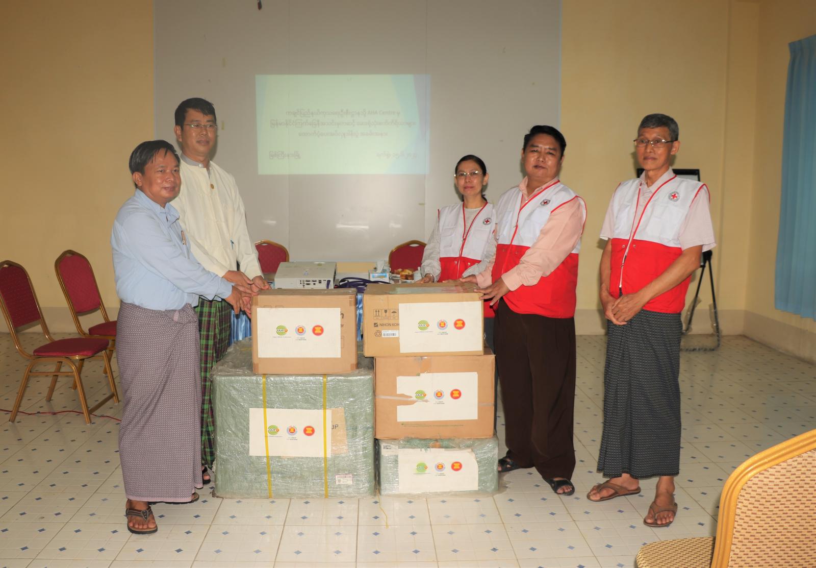ကချင်ပြည်နယ် ကုသရေးဦးစီးဌာနအတွက် AHA Centre (ဘေးအန္တရာယ်စီမံခန့်ခွဲမှုနှင့် ပတ်သက်သည့် အာဆီယံ၏ လူသားချင်းစာနာထောက်ထားမှု အကူအညီများ ညှိနှိုင်းရေးဌာန)မှ မြန်မာနိုင်ငံ ကြက်ခြေနီအသင်းမှ တစ်ဆင့် ဆေးရုံသုံးစက်ကိရိယာပစ္စည်းများ ပေးအပ်လှူဒါန်းခဲ့ရာ ယနေ့ နံနက် ၁၀ နာရီက ပြည်နယ်ပြည်သူ့ဆေးရုံ၌ ပြည်နယ်ကြက်ခြေနီကြီးကြပ်မှုကော်မတီမှ ပြည်နယ်ကုသရေး ဦးစီးဌာနထံ လွှဲပြောင်းပေးအပ်ခဲ့သည်။