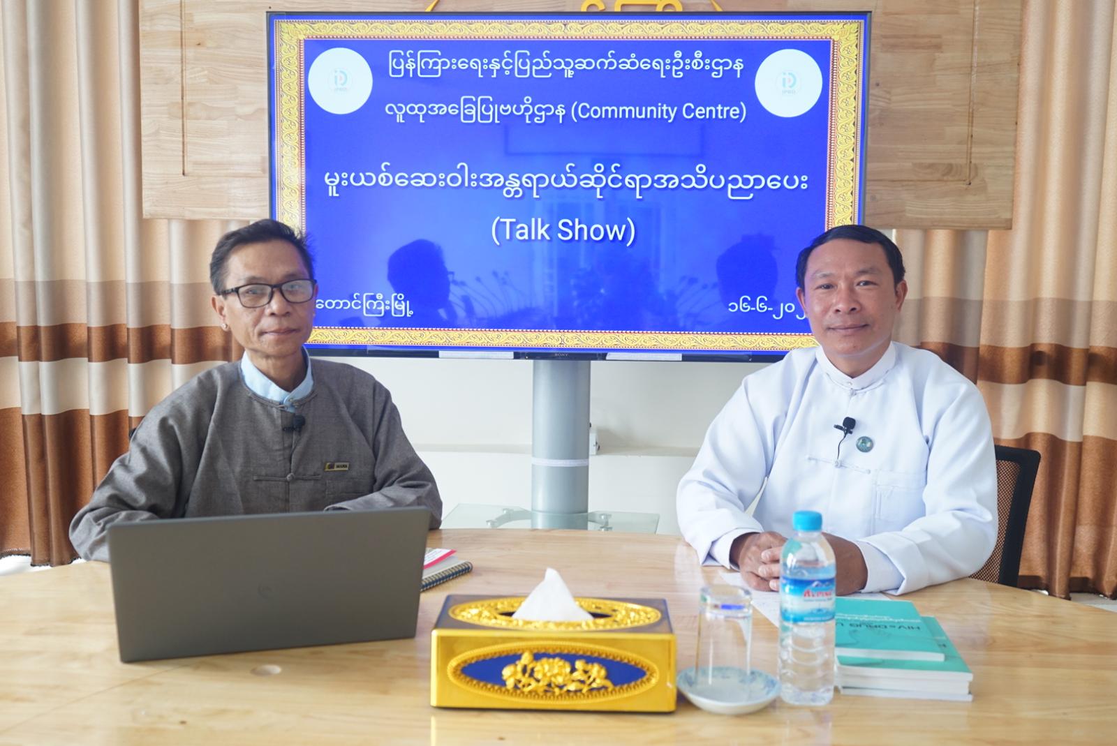 ပြန်ကြားရေးနှင့်ပြည်သူ့ဆက်ဆံရေးဦးစီးဌာနအနေဖြင့် ပြည်သူများ အသိပညာဗဟုသုတရရှိစေရန် အသိပညာပေးလုပ်ငန်းများကို အွန်လိုင်းမှတဆင့် ထုတ်လွှင့်ပေးလျက်ရှိရာ၊ လူထုအခြေပြုဗဟိုဌာန (Community Centre) တောင်ကြီးတွင် မူးယစ်ဆေးဝါးအန္တရာယ်ဆိုင်ရာအသိပညာပေး Talk Show ကို ယနေ့နံနက် ၁၀ နာရီခွဲက ပြုလုပ်သည်။