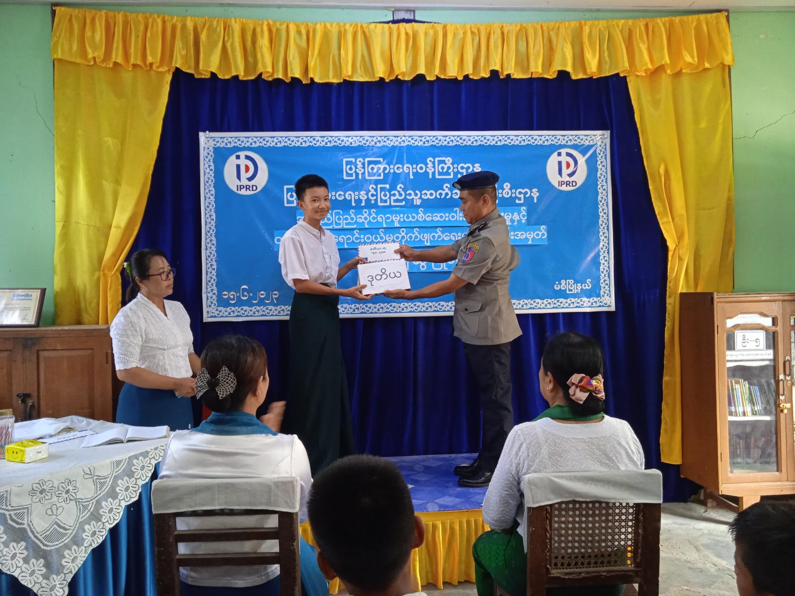 ပြိုင်ပွဲတွင် အလယ်တန်းအဆင့် ကျောင်းသား၊ ကျောင်းသူ စုစုပေါင်း (၃၀)ဦးက မူးယစ်ဆေးဝါး အန္တရာယ်နှင့် သက်ဆိုင်သည့် မိမိတို့နှစ်သက်ရာ ခေါင်းစဉ်များဖြင့် ပါဝင်ယှဉ်ပြိုင်ခဲ့ကြရာ ဆုရရှိသူများကို မံစီမြို့မရဲစခန်းမှူး ဒုတိယရဲမှူးဝင်းရွှေ၊ ပြန်ကြားရေးနှင့်ပြည်သူ့ဆက်ဆံရေးဦးစီးဌာန မြို့နယ်ဦးစီးအရာရှိ ဒေါ်မြသက်ဦး နှင့် အခြေခံပညာအထက်တန်းကျောင်း(မံစီ) ကျောင်းအုပ် ဒေါ်ခင်နှင်းဝေတို့က ဆုများချီးမြှင့်ခဲ့ပြီး ပြိုင်ပွဲဝင်သည့် ကျောင်းသား၊ ကျောင်းသူများ အားလုံးကို လည်း အမှတ်တရ လက်ဆောင်များ ပေးအပ်ခဲ့ကြောင်း သိရသည်။