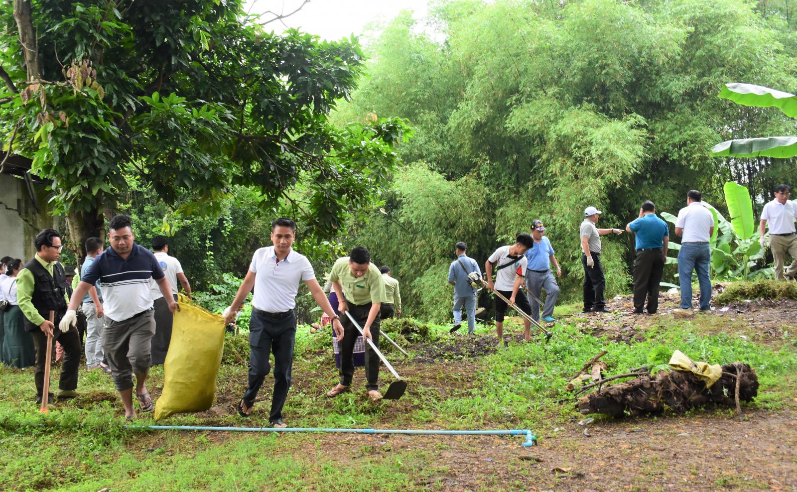 ထိုသို့သန့်ရှင်းရေးလုပ်ငန်းများ ဆောင်ရွက်ရာတွင် ပြည်နယ်ဝန်ကြီးချုပ် ဦးခက်ထိန်နန်၊ ပြည်နယ် အစိုးရအဖွဲ့ဝင်ဝန်ကြီးများက မြစ်ကြီးနားမြို့ သီတာရပ်ကွက်အတွင်းရှိ ဘုရင်နောင်လမ်းမ တစ်လျှောက် လမ်းဘေးဝဲ/ယာများတွင် မြို့နယ်စည်ပင်သာယာရေးအဖွဲ့မှ အရာထမ်း/ အမှုထမ်းများ၊ မီးသတ်တပ်ဖွဲ့ဝင်များ၊ လူမှုကူညီရေးအသင်းအဖွဲ့များ ပူးပေါင်း၍ သစ်ပင်ခြုံနွယ်များ ခုတ်ထွင် ရှင်းလင်းခြင်း၊ အမှိုက်များ ကောက်ယူခြင်း၊ ရေမြောင်းများအတွင်း ရှင်းလင်းဆောင်ရွက်ခြင်းများကို အတူတကွ ပူးပေါင်းဆောင်ရွက်ခဲ့ကြသည်။