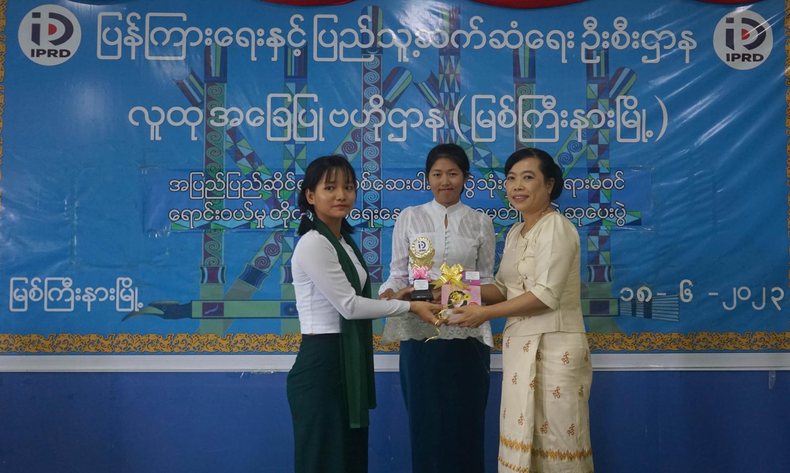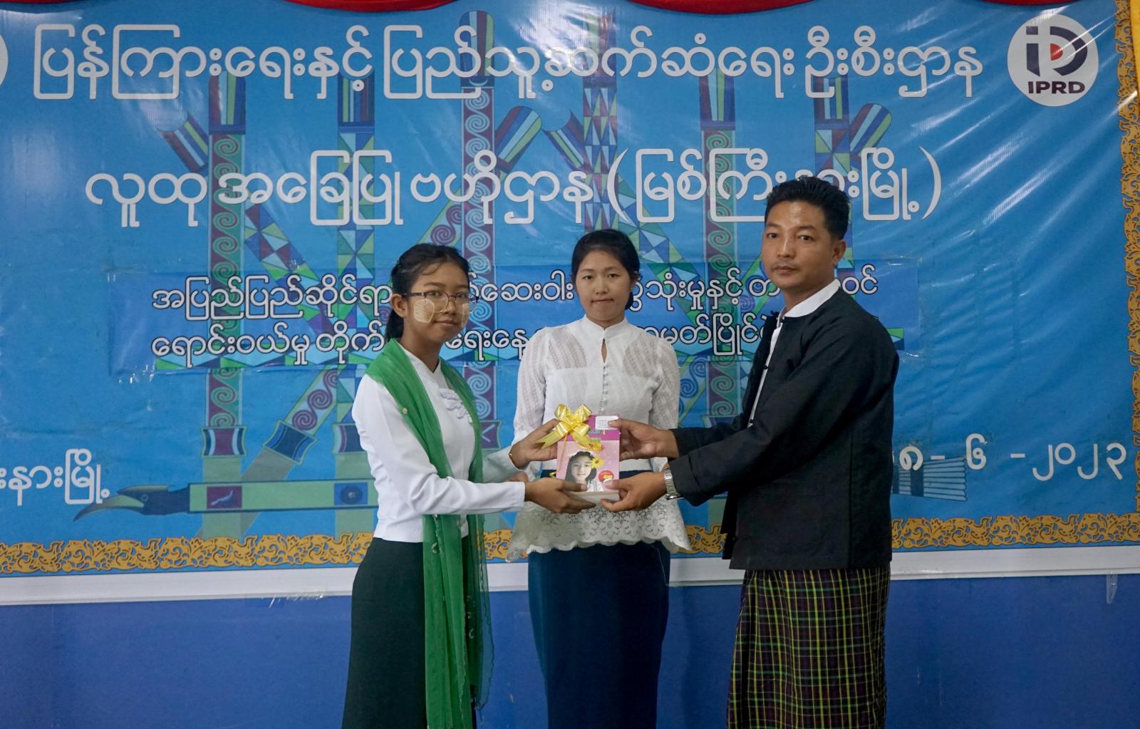 ယင်းနောက် ကျပန်းစကားပြောပြိုင်ပွဲ၊ ဉာဏ်စမ်းပဟေဠိ ပြိုင်ပွဲနှင့် ပန်းချီပြိုင်ပွဲတို့တွင် ပထမဆု၊ ဒုတိယဆု၊ တတိယဆုနှင့် အထူးဆုရရှိသည့် ကျောင်းသား/ကျောင်းသူများကို ပြန်ကြားရေးနှင့်ပြည်သူ့ဆက်ဆံရေးဦးစီးဌာန ပြည်နယ်ဦးစီးမှူး ဦးလှဌေးနှင့် တာဝန်ရှိသူများက ဂုဏ်ပြုဆုတံဆိပ်များနှင့် အမှတ်တရ ဆုလက်ဆောင်များ ပေးအပ်ချီးမြှင့်ခဲ့ကြသည်။