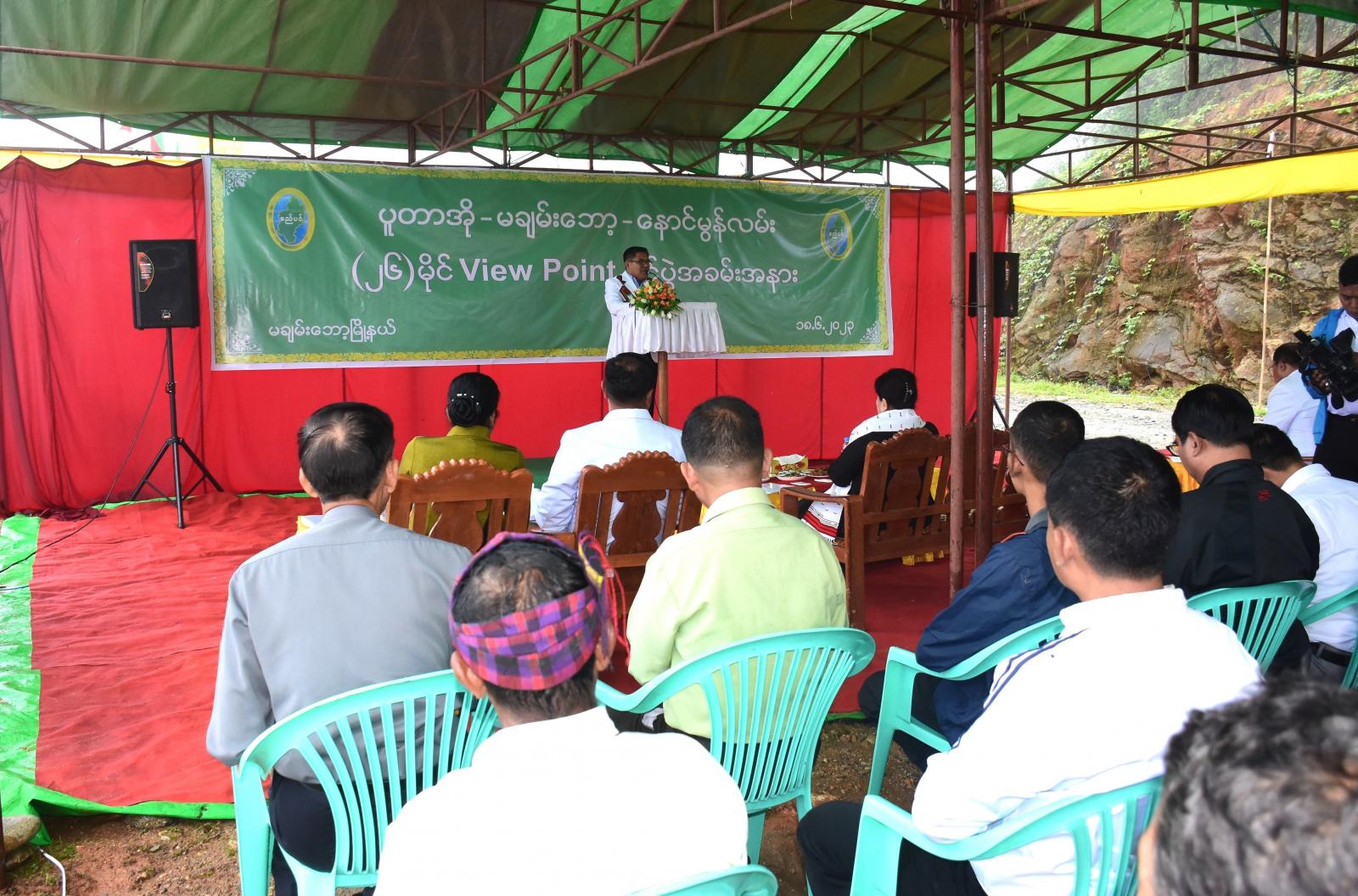 ဆက်လက်၍ ပူတာအိုမြို့နယ် စည်ပင်သာယာရေးအဖွဲ့ အမှုဆောင်အရာရှိ ဦးတင်ကိုလွင်က ရှုခင်းသာ (View Point) အကောင် အထည်ဖော်ဆောင်ရွက်ခဲ့သည့် တည်ဆောက်ရေးလုပ်ငန်းများနှင့် စပ်လျဉ်း၍ ရှင်းလင်းတင်ပြပြီး အလန်ဂါးကျေးရွာဒေသခံ ပြည်သူ တစ်ဦးက ကျေးဇူးတင်စကားပြော ကြားသည်။