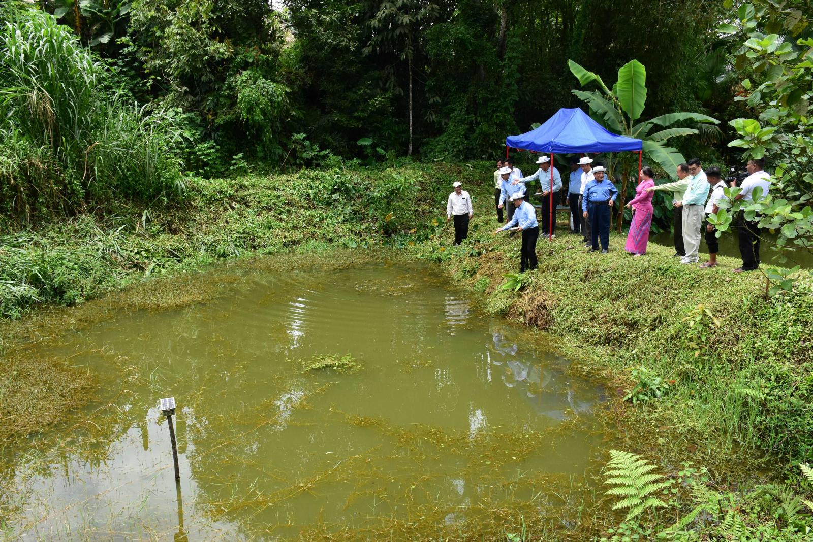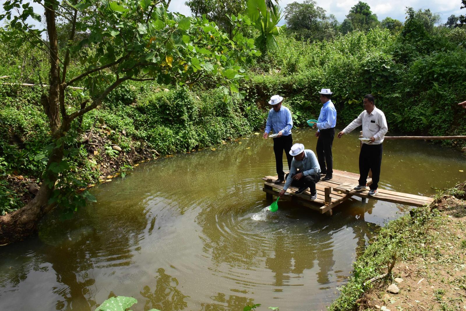 ထိုမှတစ်ဆင့် ပြည်နယ်ဝန်ကြီးချုပ်နှင့်အဖွဲ့ဝင်များသည် နန်းခမ်းကျေးရွာသို့ သွားရောက်ပြီး နိုင်ငံ့ စီးပွားမြှင့်တင်ရေးရန်ပုံငွေကျပ် (၁၀)သိန်းဖြင့် ပိုင်ရှင် ဦးဖုန်ရားဖေရမ် ငါးကန်၌ တီလားဗီးယား ငါး၊ ငါးကြင်းနှင့် မျိုးစပ်ငါးခူများ မွေးမြူထားရှိမှု အခြေအနေများ၊ ရှင်သန်ကြီးထွားလာမှု အခြေအနေများ ကို ကြည့်ရှုစစ်ဆေးကာ အဆိုပါ ကျေးရွာအတွင်းမှ ငါးဦးစီးဌာနမှ ဖွင့်လှစ်သည့် စနစ်တကျ ငါးမွေးမြူရေးသင်တန်းတက်ရောက်ခဲ့ကြသော တောင်သူများနှင့် ရင်းရင်းနှီးနှီးတွေ့ဆုံအားပေးကာ ထောက်ပံ့ငွေများကို ထောက်ပံ့ပေး အပ်ခဲ့သည်။