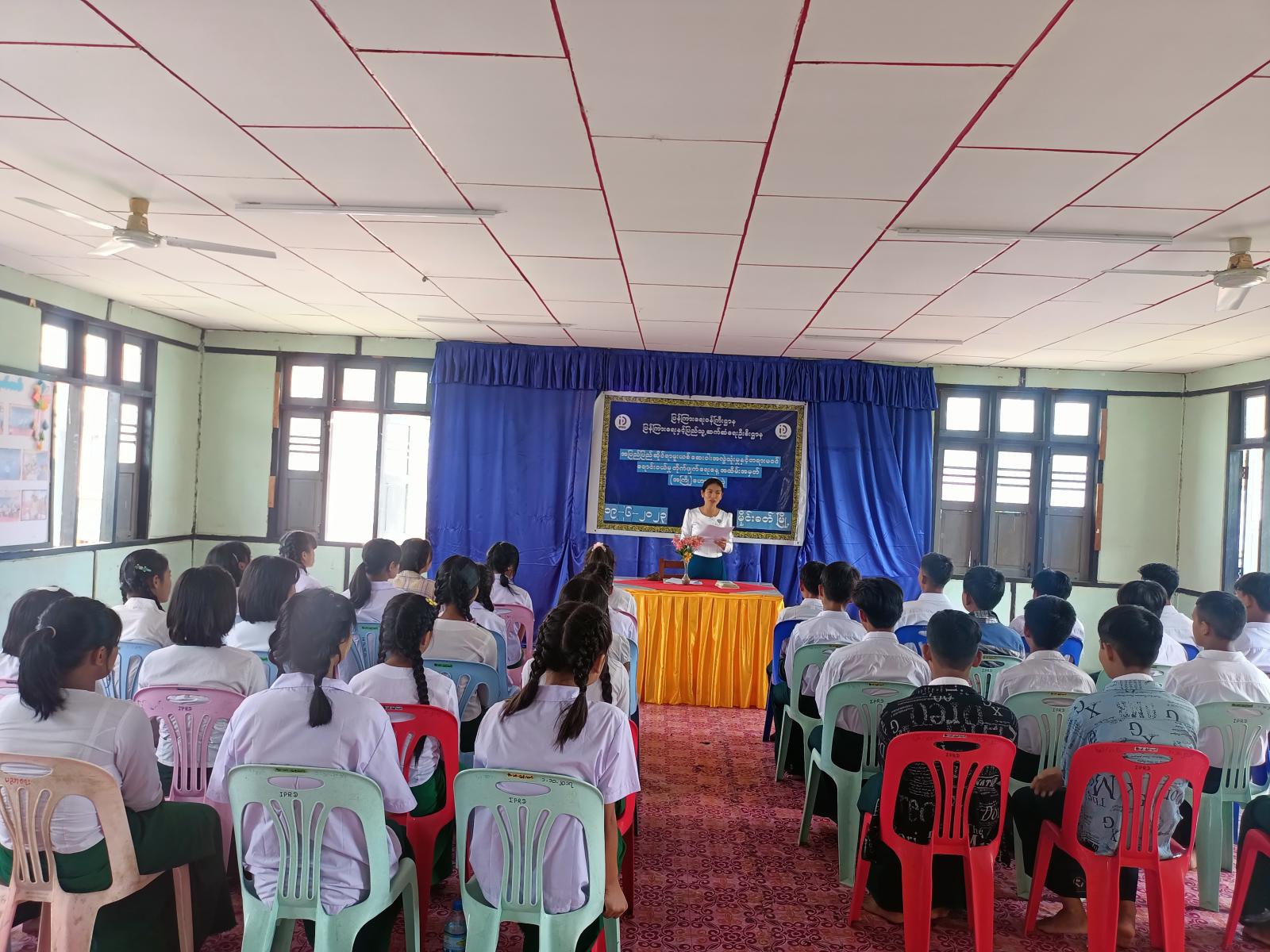 ရှေးဦးစွာ ပြန်ကြားရေးနှင့်ပြည်သူ့ဆက်ဆံရေးဦးစီးဌာန၊ မြို့နယ်ဦးစီးမှူး ဒေါ်နန်းနွယ်နီအောင်က “လူငယ်နှင့်မူးယစ်ဆေးဝါး” ခေါင်းစဉ်ဖြင့် ဟောပြောရာတွင် ကျောင်းသားလူငယ်များ သိရှိလိုက်နာသင့်သည့်အချက်များ၊ မူးယစ်ဆေးဝါးသုံးစွဲမှုကြောင့် ဖြစ်ပေါ်လာနိုင်သည့် ဆိုးကျိုးအန္တရာယ်များ၊ ကြိုတင်ကာကွယ်ရေး သည် ကုသရေးထက် ပိုမိုကောင်းမွန်ကြောင်းနှင့် ကျောင်းသားလူငယ်များအနေဖြင့် အားလပ်ချိန်တွင် အားကစားနှင့် စာဖတ်ခြင်းတို့ကိုသာ လေ့လာသင်ယူ သင့်ပါကြောင်း ပြောကြားပြီး အပြည်ပြည်ဆိုင်ရာ မူးယစ်ဆေးဝါးအလွဲသုံးမှုနှင့် တရားမဝင်ရောင်းဝယ်မှု တိုက်ဖျက်ရေးနေ့ အထိမ်းအမှတ် သတင်းစကား လက်ကမ်းစာစောင်များ ဖြန့်ဝေခဲ့သည်။