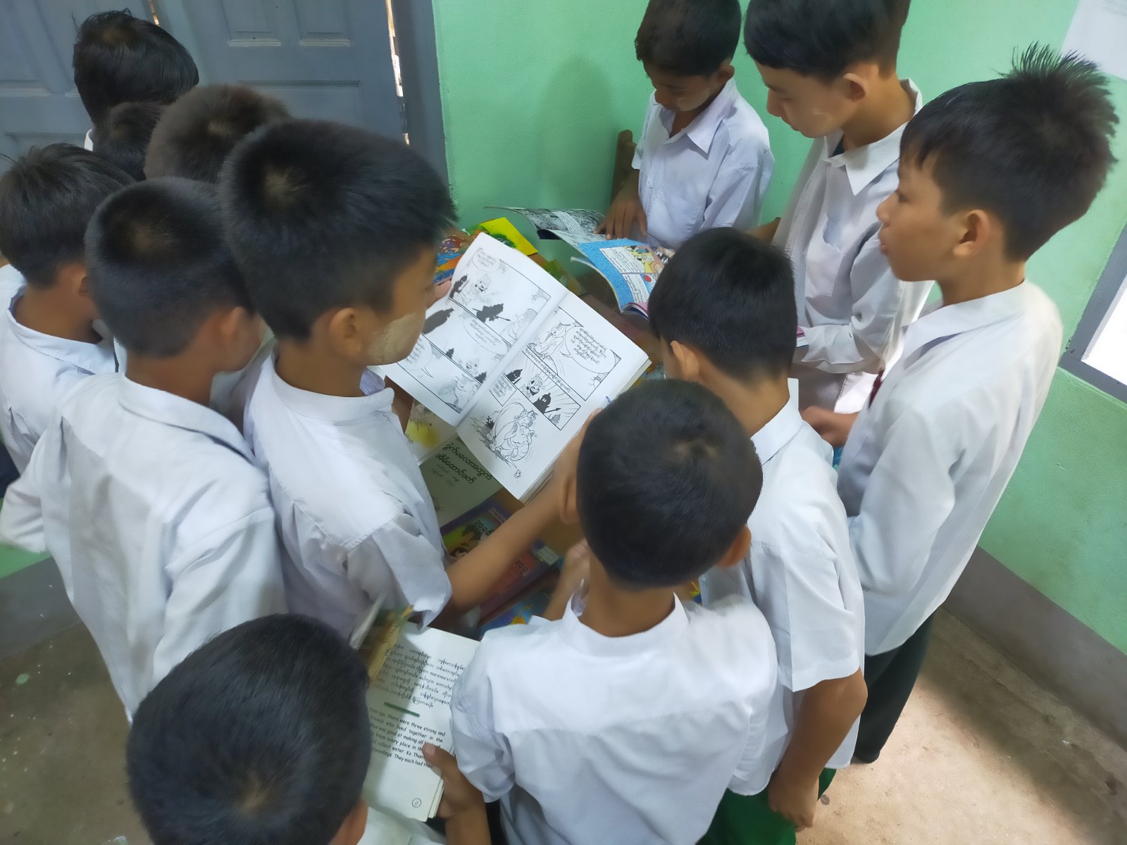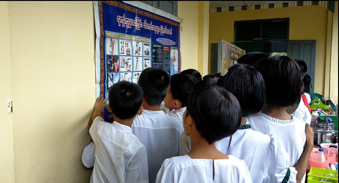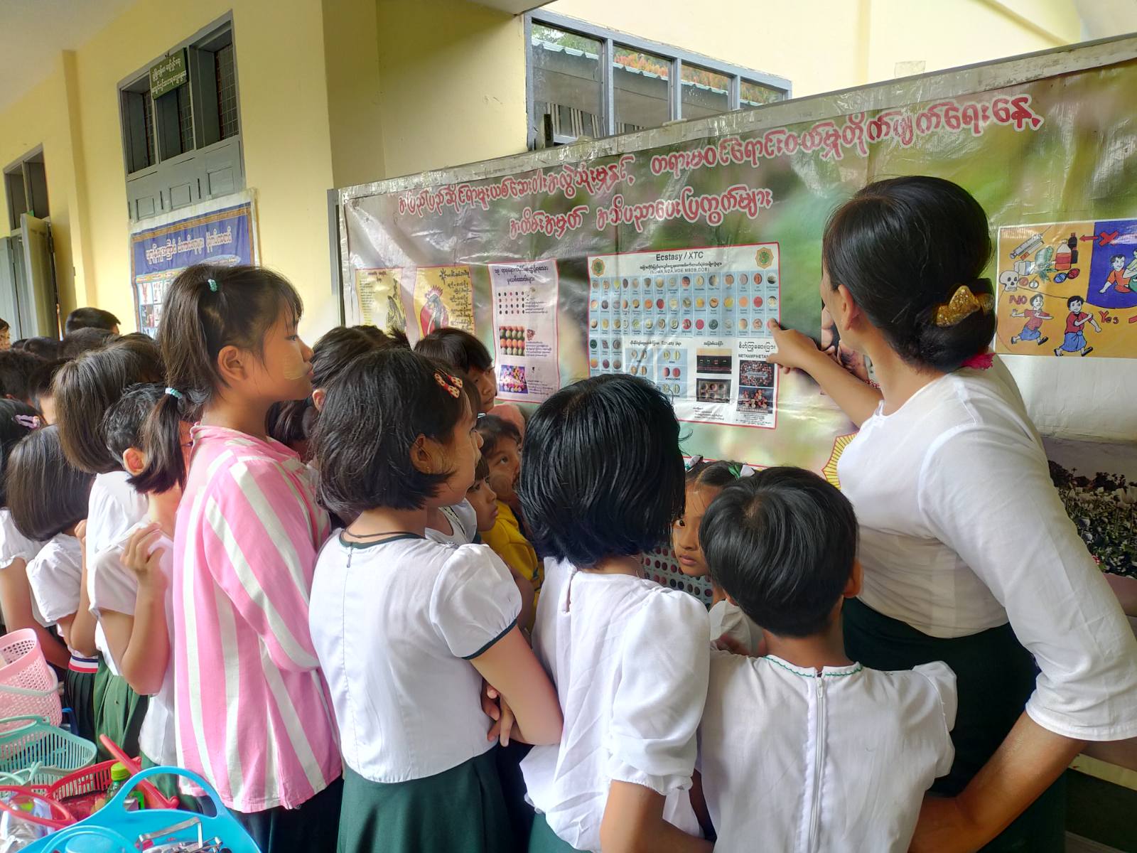 အဆိုပါ အခမ်းအနားတွင် ပြန်ကြားရေးနှင့်ပြည်သူ့ဆက်ဆံရေးဦးစီးဌာနမှ ကျောင်းသူ၊ ကျောင်းသားများ ဖတ်ရှုလေ့လာနိုင်ရန် ကလေးကဗျာများ၊ ရုပ်ပြပုံပြင်များ၊ စာစောင်များစသည့် ကလေးများအသိပညာတိုးပွားရေး စာအုပ်စာပေများ၊ စာဖတ်ရှိန်မြှင့်တင်ရေး၊ မူးယစ်ဆေးဝါး အန္တရာယ်တားဆီးကာကွယ်ရေးတို့နှင့်ပတ်သတ်သည့် ဆောင်းပါး၊ ကဗျာ၊ ကာတွန်း သိမှတ်ဖွယ်ရာများ စသည့်အသိပညာပေး နံရံကပ်စာစောင် ကျောင်းသူ၊ ကျောင်းသားများက စိတ်ပါ၀င်စားစွာကြည့်ရှုလေ့လာခဲ့ကြသည်။