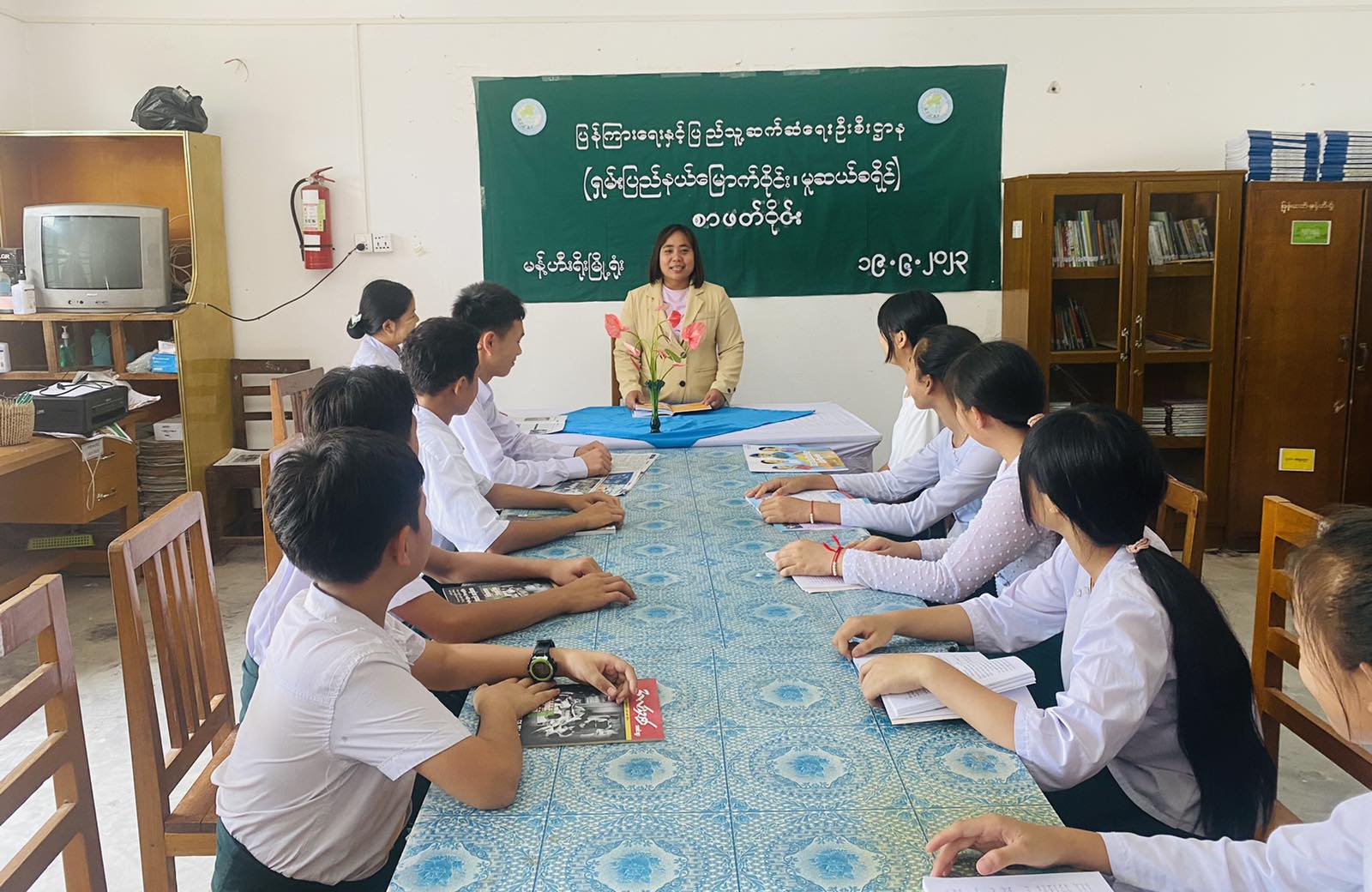 ရှမ်းပြည်နယ်(မြောက်ပိုင်း)၊ မူဆယ်ခရိုင်၊ မန့်ဟီးရိုးမြို့ လူထုအခြေပြုဗဟိုဌာန (Community Centre) ခန်းမတွင် ကျောင်းသား/ကျောင်းသူများ စာဖတ်ရှိန် ပိုမိုတိုးတက်မြင့်မားလာစေရန်၊ ကျောင်းစာအပြင် အထွေထွေဗဟုသုတများ တိုးတက်မြင့်မားလာစေရေး၊ စာဖတ်ချင်စိတ် တိုးတက်လာစေရေးနှင့် စာပေနှင့် ရင်းနှီးထိတွေ့မှုများ ပြားလာစေရန်ရည်ရွယ်၍ အခြေခံပညာအထက်တန်းကျောင်းမှ ကျောင်းသား/ကျောင်းသူများနှင့် ယနေ့နံနက်(၁၀)အချိန်က စာဖတ်ဝိုင်း ကျင်းပ ဆောင်ရွက်ခဲ့ပါသည်။
