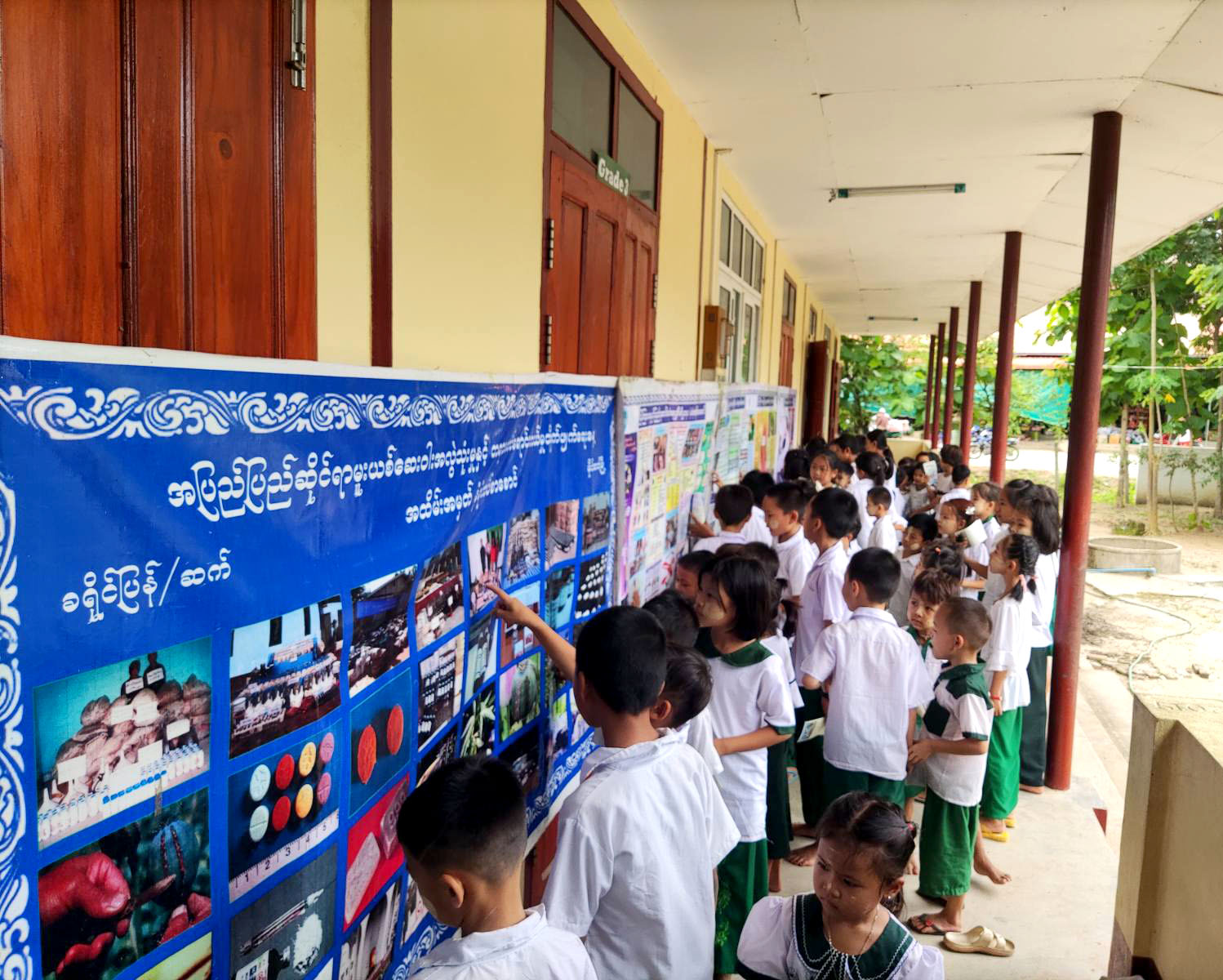 ထို့နောက် ပြန်ကြားရေးနှင့်ပြည်သူ့ဆက်ဆံရေးဦးစီးဌာန ဝန်ထမ်းများက အပြည်ပြည်ဆိုင်ရာ မူးယစ်ဆေးဝါးအလွဲသုံးမှုနှင့် တရားမဝင်ရောင်းဝယ်မှုတိုက်ဖျက်ရေးနေ့ “သတင်းစကား” လက်ကမ်းစာစောင်များ အခမဲ့ဖြန့်ဝေပေးခဲ့ပြီး ကျောင်းသား၊ ကျောင်းသူများက သုတ၊ ရသ စာအုပ်စာစောင်များ ငှားရမ်းဖတ်ရှုကာ ပြန်ကြားရေးနှင့်ပြည်သူ့ဆက်ဆံရေးဦးစီးဌာနမှ ပြသထားသည့် မူးယစ်ဆေးဝါးအန္တရာယ် အသိပညာပေးနံရံကပ်စာစောင်များ၊ လူကုန်ကူးမှုတားဆီးကာကွယ်ရေးအသိပညာပေး နံရံကပ်စာစောင်များကို လေ့လာကြည့်ရှုခဲ့ကြောင်း သိရသည်။
