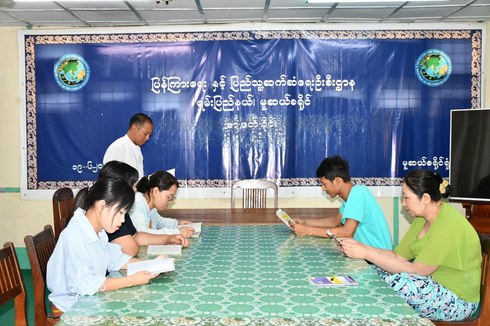 ရှမ်းပြည်နယ်(မြောက်ပိုင်း)၊ မူဆယ်ခရိုင်၊ ပြန်ကြားရေးနှင့်ပြည်သူ့ဆက်ဆံရေးဦးစီးဌာနရှိ လူထုအခြေပြုဗဟိုဌာန (Community Centre) ခန်းမတွင် ယမန်နေ့ နေ့လယ် (၂) အချိန်က စာဖတ်ဝိုင်းကျင်းပ ဆောင်ရွက်ခဲ့ပါသည်။