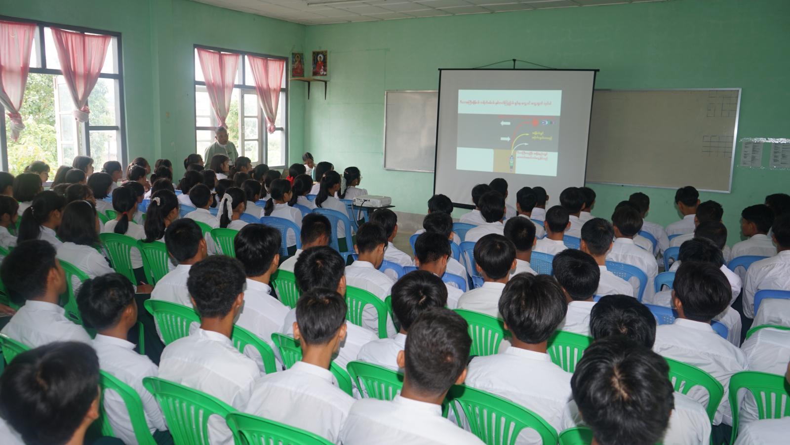 ရှေးဦးစွာ ပအိုဝ်းကိုယ်ပိုင်အုပ်ချုပ်ခွင့်ရဒေသ စီမံအုပ်ချုပ်ရေးအဖွဲ့ အတွင်းရေးမှူး ဦးတင်ထူးမောင်က ကျောင်းသား၊ ကျောင်းသူများအား မော်တော်ဆိုင်ကယ်မောင်းနှင်ရာတွင် ဆိုင်ကယ်စီးဦးထုပ်များကို ဆောင်းကြရန်၊ နှစ်ဦးထက် ပိုမစီးရန်၊ မော်တော်ယာဉ်မောင်းနှင်သူများ၊ စီးနင်းသူများ ခါးပတ် ပတ်ကြရန်၊ ယာဉ်များအသုံးပြုရာတွင် ပေါ့ဆစွာ အသုံးပြုခြင်းကြောင့် စက္ကန့်ပိုင်းအတွင်း ဆုံးရှုံးသွားနိုင်သော အသက်အန္တရာယ်များ၊ လမ်းအသုံးပြုခြင်းနှင့် ပတ်သက်၍ လိုက်နာသင့်သည့် အချက်များ စသည့် ယာဉ်အန္တရာယ်ကင်းရှင်းစွာ မောင်းနှင်သွားနိုင်ရေးအသိပညာပေးခြင်းကိုလည်းကောင်း၊ Vape အသုံးပြုခြင်းနှင့်ပတ်သက်သည့် အကြောင်းအရာများကို လည်းကောင်း အကျယ်တဝင့် ရှင်းလင်းပြောကြားခဲ့ကြောင်း သိရသည်။