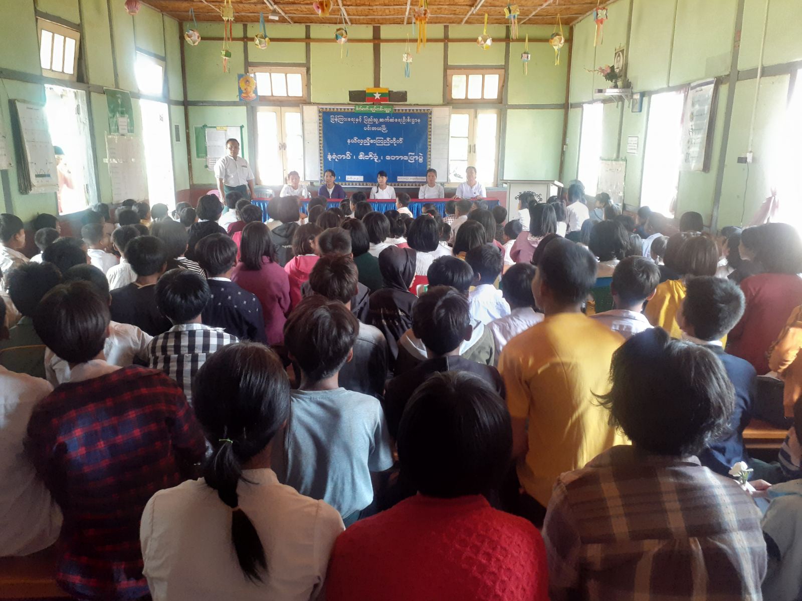ထို့နောက် ပြန်ကြားရေးနှင့်ပြည်သူ့ဆက်ဆံရေးဦးစီးဌာနမှ ဝန်ထမ်းများက စာအုပ်စာစောင်များ ပြသပေးခြင်း၊ မူးယစ်ဆေးဝါးအန္တရာယ် အသိပညာပေးနံရံကပ်စာစောင်များ ပြသပေးခြင်းတို့ကို ဆောင်ရွက် ပေးခဲ့ကြပြီး ပြန်ကြားရေးနှင့်ပြည်သူ့ဆက်ဆံရေးဦးစီးဌာနမှ အခမဲ့ ထုတ်ဝေသည့် အပြည်ပြည်ဆိုင်ရာ မူးယစ်ဆေးဝါးအလွဲသုံးမှုနှင့် တရားမဝင်ရောင်းဝယ်မှုတိုက်ဖျက်ရေးနေ့အထိမ်းအမှတ် သတင်းစကားလက်ကမ်းစာစောင်များကို အခမဲ့ ဖြန့်ဝေပေးခဲ့ကြရာ ဆရာ/ဆရာမများနှင့် ကျောင်းသား/ကျောင်းသူများက စိတ်ဝင်တစားဖြင့် လေ့လာဖတ်ရှုခဲ့ကြကြောင်း သိရသည်။