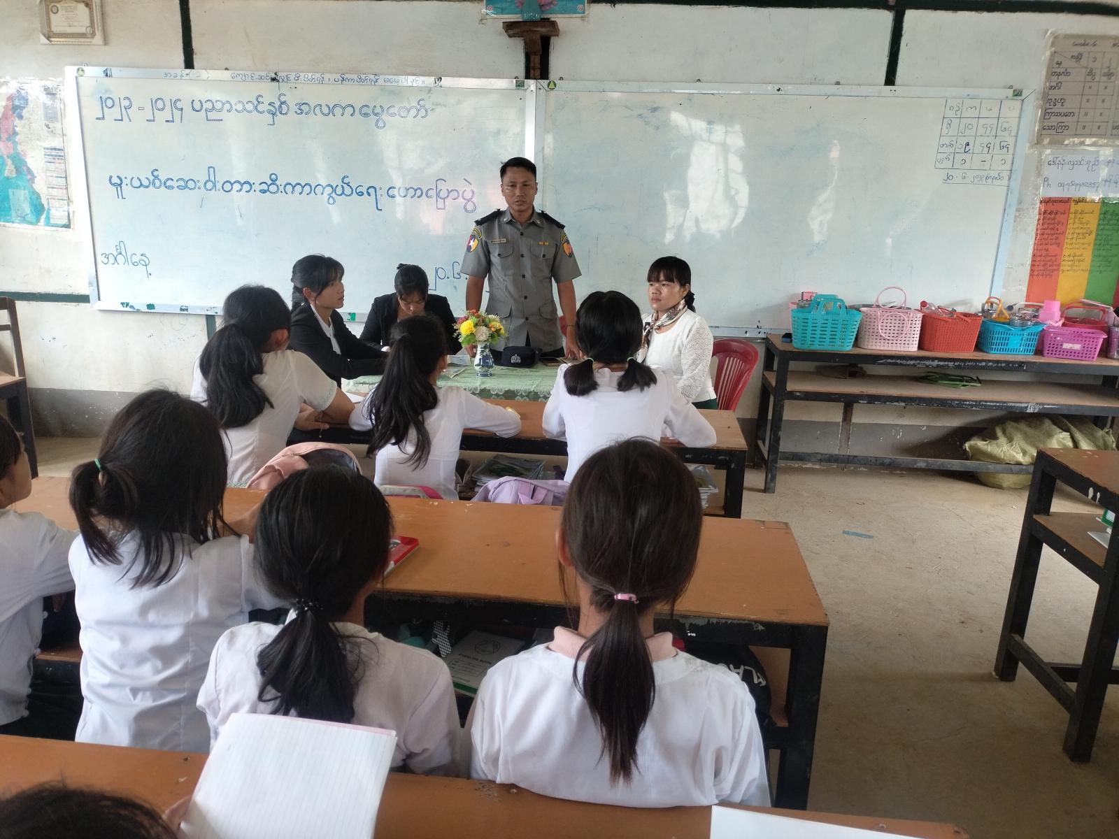 ထိုသို့ ကျင်းပဆောင်ရွက်ရာတွင် မြို့နယ်ပြန်ကြားရေးနှင့်ပြည်သူ့ဆက်ဆံရေးဦးစီးဌာန၊ မြို့နယ်ဦးစီးအရာရှိ ဒေါ်အိရွှေစင်လတ်၊ မြို့နယ်ရဲတပ်ဖွဲ့မှ ဒုရဲအုပ် ခိုင်ဇော်မင်းနှင့် မြို့နယ်အားကစားနှင့် ကာယပညာဦးစီးဌာနမှ အားကစားမှူး ဒေါ်ဝင့်သူဇာထွန်းတို့က မူးယစ်ဆေးဝါးသုံးစွဲခြင်း အကြောင်းရင်းများနှင့် မူးယစ်ဆေးသုံးစွဲခြင်းကြောင့် ဖြစ်ပေါ်လာနိုင်သည့် ဆိုးကျိုးများနှင့် မူးယစ်ဆေးဝါး လက်ဝယ်ထားရှိမှုကြောင့် အရေးယူခံနိုင်ရသည် ပစ်မှုပစ်ဒဏ်များအကြောင်း ကျောင်းသား၊ ကျောင်းသူများ သိရှိနားလည် သဘောပေါက်စေရန် ရှင်းလင်းဟောပြောခဲ့ကြောင်း သိရသည်။