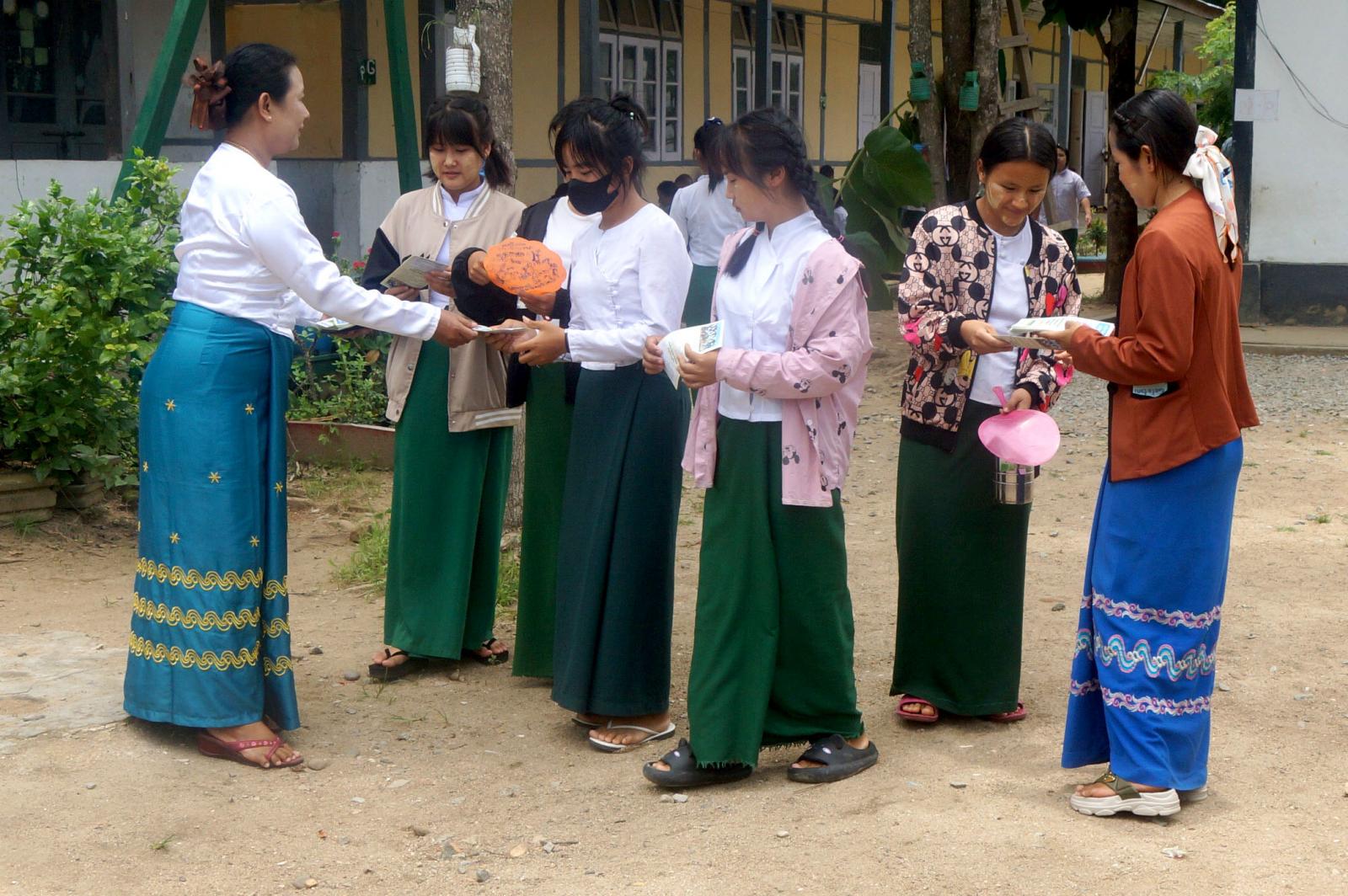 ရှမ်းပြည်နယ်(အရှေ့ပိုင်း) မိုင်းဆတ်ခရိုင် ပြန်ကြားရေးနှင့်ပြည်သူ့ဆက်ဆံရေးဦးစီးဌာနအနေဖြင့် ပြည်သူများ အသိပညာဗဟုသုတရရှိစေရန် ၂၀၂၃ ခုနှစ်၊ ဇွန်လ(၂၆)ရက်နေ့တွင် ကျရောက်မည့် အပြည်ပြည်ဆိုင်ရာ မူးယစ်ဆေးဝါးအလွဲသုံးမှုနှင့် တရားမဝင်ရောင်းဝယ်မှု တိုက်ဖျက်ရေးနေ့ အထိမ်းအမှတ် “သတင်းစကား” လက်ကမ်းစာစောင်များကို ယနေ့မွန်းတည့် (၁၂) နာရီအချိန်တွင် အ.ထ.က(မိုင်းဆတ်)မှ ကျောင်းသား၊ ကျောင်းသူများ လက်ဝယ်အရောက် အခမဲ့ ဖြန့်ဝေပေးခဲ့ကြောင်း သိရသည်။