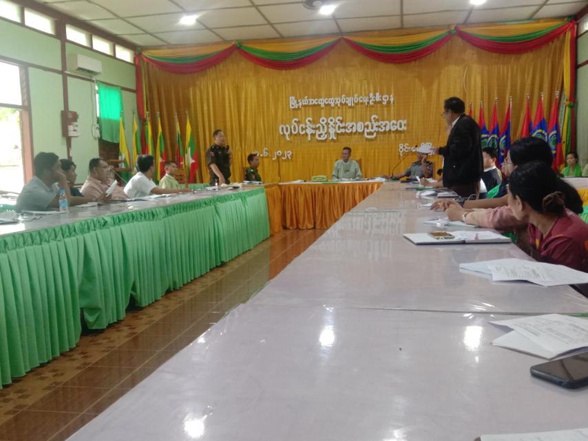 ရှေးဦးစွာ မြို့နယ်စီမံအုပ်ချုပ်ရေးအဖွဲ့ဥက္ကဋ္ဌ ဦးဇော်မင်းဦးက နိုင်ငံရေးဦးတည်ချက် (၁၂) ချက်၊ ရှေ့လုပ်ငန်းစဉ် (၅)ရပ်၊ ကိုဗစ်-၁၉ ရောဂါ ကာကွယ်ဆေး ရာနှုန်းပြည့်ထိုးနှံရေး၊ မိုးတွင်းကာလတွင် ဖြစ်တတ်သော ရောဂါများနှင့် သဘာဝဘေးအန္တရာယ်များ ကြိုတင်ကာကွယ်နိုင်ရေး ရပ်ကွက်ကျေးရွာ ဒေသဖွံ့ဖြိုးရေး လုပ်ငန်းများ ပူးပေါင်းညှိနှိုင်းဆောင်ရွက်ကြရန်မှာကြားပြီး မြို့နယ်စီမံအုပ်ချုပ်ရေးအဖွဲ့ဝင် (၁)ဗိုလ်မှူးထင်လင်းဦးက နယ်မြေလုံခြုံရေးနှင့်ပတ်သက်၍ ပြောကြားခဲ့သည်။