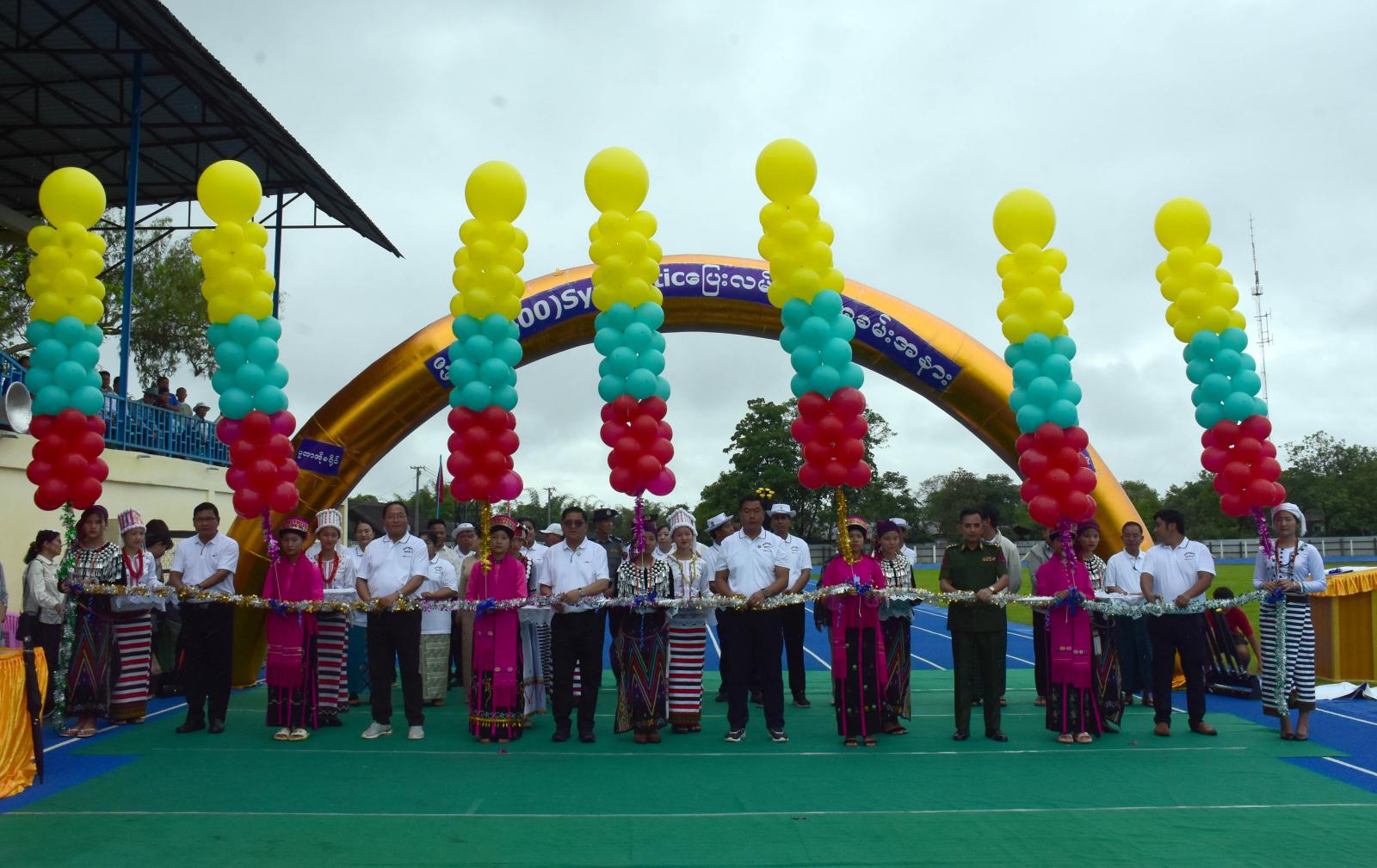 ထို့နောက် Synthetic ပြေးလမ်းတာဝန်ယူ တည်ဆောက်ခဲ့သော ရွှေအိုက်ရွှေပြည်သာကုမ္ပဏီ တာဝန်ရှိသူက Synthetic ပြေးလမ်းနှင့်ပတ်သက်သည့် စာရွက်/စာတမ်းများကို ပြည်နယ်အားကစားနှင့် ကာယပညာဦးစီးဌာန၊ ပြည်နယ်ဦးစီးမှူးထံ လွှဲပြောင်းပေးအပ်ပြီး ခရိုင် Synthetic ပြေးလမ်းသစ်ကို ပြည်နယ်ဝန်ကြီးချုပ်၊ ပြည်နယ်ဝန်ကြီးများ၊ စစ်ဗျူဟာ(အခြေချ) ပူတာအိုဗျူဟာမှူး၊ အားကစားနှင့် လူငယ်ရေးရာဝန်ကြီးဌာန၊ ဒုတိယညွှန်ကြားရေးမှူးချုပ် ဦးကျော်ဆန်းဦးနှင့် ကုမ္ပဏီတာဝန်ရှိသူတို့က ခရိုင် Synthetic ပြေးလမ်းသစ်ကို ဖဲကြိုးဖြတ်ဖွင့်လှစ်ပေးကြကာ ပြေးလမ်းသစ်ကို လှည့်လည် ကြည့်ရှုစစ်ဆေး ခဲ့ကြပြီး ပြေးလမ်းသစ်ဖွင့်ပွဲ အထိမ်းအမှတ် ဒေသခံတိုင်းရင်းသားမျိုးနွယ်စုများ၏ တေးသရုပ်ဖော်အကအလှများဖြင့် ဖျော်ဖြေတင်ဆက်မှုများကို ကြည့်ရှု အားပေးခဲ့ကြပြီး ပြည်နယ်ဝန်ကြီးချုပ်က အကအဖွဲ့များအတွက် ထောက်ပံ့ငွေများ ချီးမြှင့်ပေးအပ်သည်။