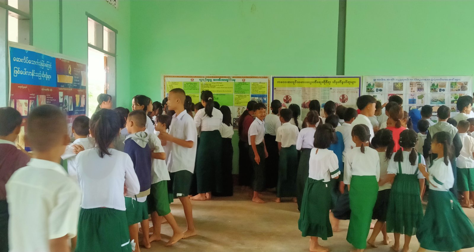 ထို့နောက် ခန်းမအတွင်း ပြသထားသော နံရံကပ်စာစောင်များကို ကျောင်းသား/ကျောင်းသူများမှ စိတ်ပါဝင်စားစွာ ကြည့်ရှုလေ့လာပြီး ပြန်ကြားရေးနှင့်ပြည့်သူ့ဆက်ဆံရေးဦးစီးဌာနအနေဖြင့် ကျောင်းများဖွင့်လှစ်သည့်ကာလအတွင်း ကျောင်းသားလူငယ်များ အသိပညာဗဟုသုတ ပိုမိုရရှိစေရေးအတွက် အခြေခံပညာကျောင်းများသို့ လစဉ်နယ်လှည့်အသိပညာပေးရေးလုပ်ငန်းများ ကွင်းဆင်းဆောင်ရွက်သွားမည်ဖြစ်ကြောင်း သိရသည်။