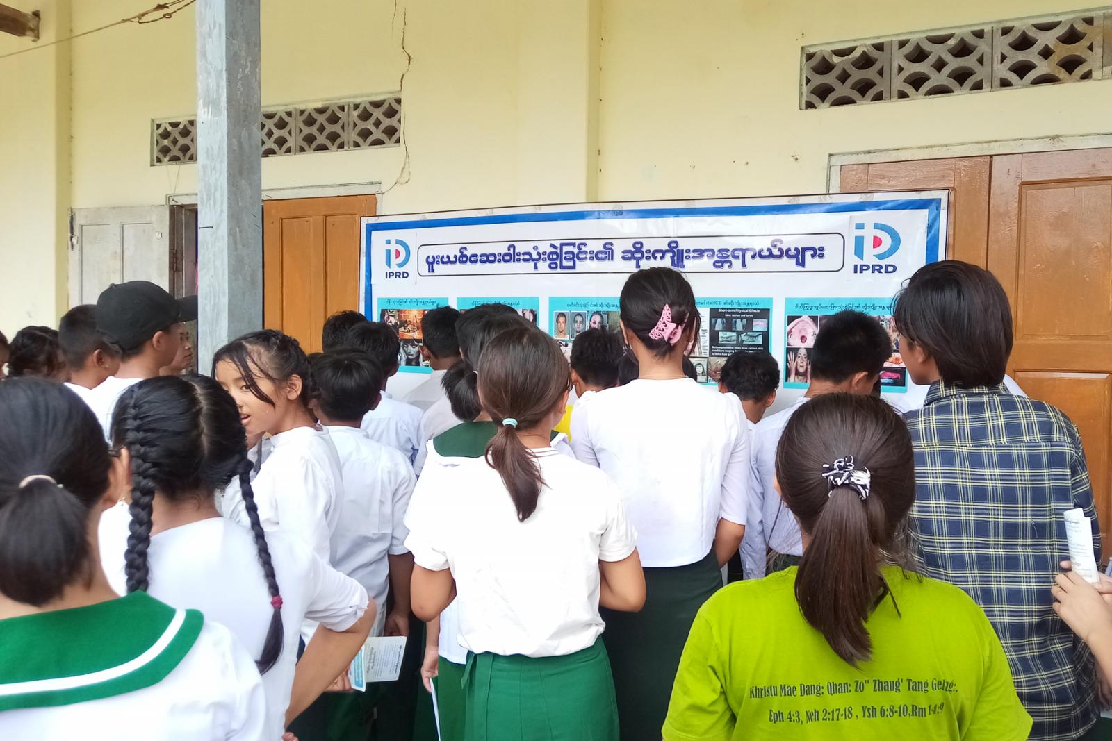 အဆိုပါ ဟောပြောပွဲတွင် ပြန်ကြားရေးနှင့်ပြည်သူ့ဆက်ဆံရေးဦးစီးဌာနမှ မြို့နယ်ဦးစီးမှူးက မူးယစ်ဆေးဝါးသုံးစွဲခြင်းကြောင့် ခံစားရရှိမည့် ဆိုးကျိုးအန္တရာယ်များ၊ မူးယစ်ဆေးဝါးသုံးစွဲရခြင်း၏ အကြောင်းရင်းများ၊ မူးယစ်ဆေးဝါးနှင့်ပတ်သက်၍ ကျောင်းသား/ကျောင်းသူများ သိရှိလိုက်နာရာမည့် အချက်များကို ဟောပြောခဲ့သည်။ ယင်းနောက် ကျောင်းသား/ကျောင်းသူများက ပြန်ကြားရေးနှင့်ပြည်သူ့ဆက်ဆံရေးဦးစီးဌာနမှ ပြသထားသည့် မူးယစ်ဆေးဝါးအန္တရာယ် အသိပညာပေး နံရံကပ်ဓာတ်ပုံအား ကြည့်ရှုခဲ့ကြသည်။