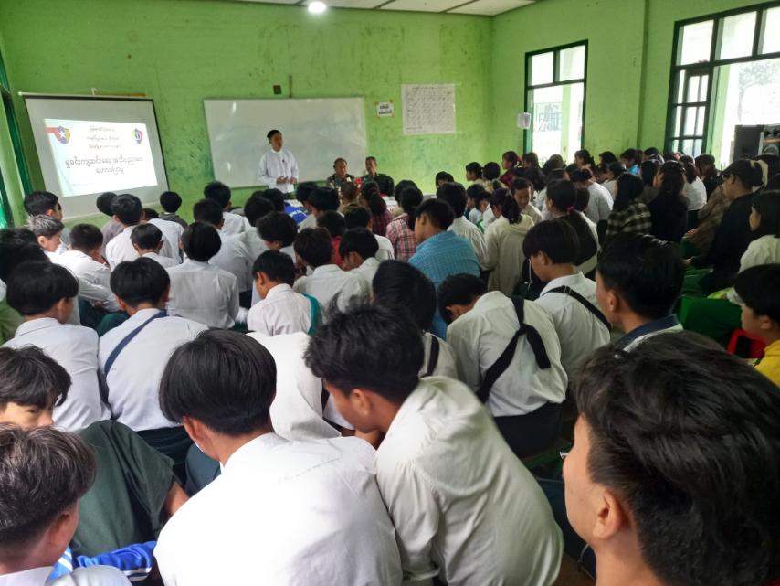 ရှေးဦးစွာ မြို့နယ်ရဲတပ်ဖွဲ့မှူး ရဲမှူး လင်းထူးက ကျောင်းသား/သူများအား မူးယစ်ဆေးဝါး အန္တရာယ်က တိုင်းပြည်၏ အနာဂတ်ကို ကြီးမားတဲ့ခြိမ်းခြောက်မှု အန္တရာယ်တစ်ခု ဖြစ်တာ ကြောင့် ကျောင်းသား/သူများအနေဖြင့် မူးယစ်ဆေးဝါးအန္တရာယ်ကို သိရှိနားလည် ရှောင်ရှားတတ်ရန်၊ မူးယစ်ဆေးသုံးရခြင်း အဓိကအကြောင်းအရင်းများ၊ မူးယစ်ဆေးသုံးစွဲခြင်းကြောင့် ဖြစ်ပွားတတ်သော ရုပ်ပိုင်း/ စိတ်ပိုင်းဆိုင်ရာ ဆိုးကျိုးများအားလည်းကောင်း၊ ပြန်ကြားရေးနှင့် ပြည်သူ့ဆက်ဆံရေးဦးစီးဌာန ဦးစီးအရာရှိ ဦးဂွါဇာလေးက ယနေ့လူငယ်နှင့် မူးယစ်ဆေးဝါး အကြောင်းအား လည်ကောင်း၊ ဒုတိယရဲမှူး သန့်ကျော် က မူးယစ်ဆေးဝါးဆိုင်ရာ ပြစ်မှုနှင့် ပြင်ဒဏ်များ၊ ယာဉ်စည်းကမ်း၊ လမ်းစည်းကမ်းများကို အကျယ်တဝင့် ရှင်းလင်းဆွေးနွေး ဟောပြောခဲ့ကြသည်။