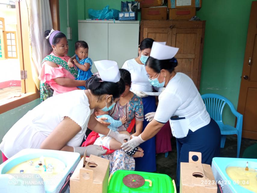 ကလေးငယ်များကို ကာကွယ်ဆေး ထိုးနှံတိုက်ကျွေးပေးရာတွင် ရပ်ကွက်/ကျေးရွာများရှိ အသက် နှစ်လအရွယ်မှ တစ်နှစ်ခွဲအရွယ်ကလေးငယ်များအား မိခင်နှင့်ကလေး ကျန်းမာရေး ဌာနမှ ဆရာမကြီး ဒေါပြုံးချိုနှင့်အဖွဲ့များက ပုံမှန်ကာကွယ်ဆေးများဖြစ်သော ဆုံဆို့၊ ကြက်ညာ၊ အသည်းရောင်အသားဝါ (ဘီ)ပိုး၊ ဦးနှောက်အမြှေးရောင် (၅)မျိုးစပ်ကာကွယ်ဆေး ပိုလီယို၊ အကြောသေ၊ ဂျိုက်သိုး၊ ဂျပန်ဦးနှောက်ရောင်ရောဂါ (၁၀)မျိုးနှင့် ကာကွယ်ဆေးများ ထိုးနှံတိုက်ကျွေးပေးခြင်းများကို ဆောင်ရွက်ပေးလျက်ရှိကြောင်း တာဝန်ရှိသူတစ်ဦးထံမှ သိရသည်။