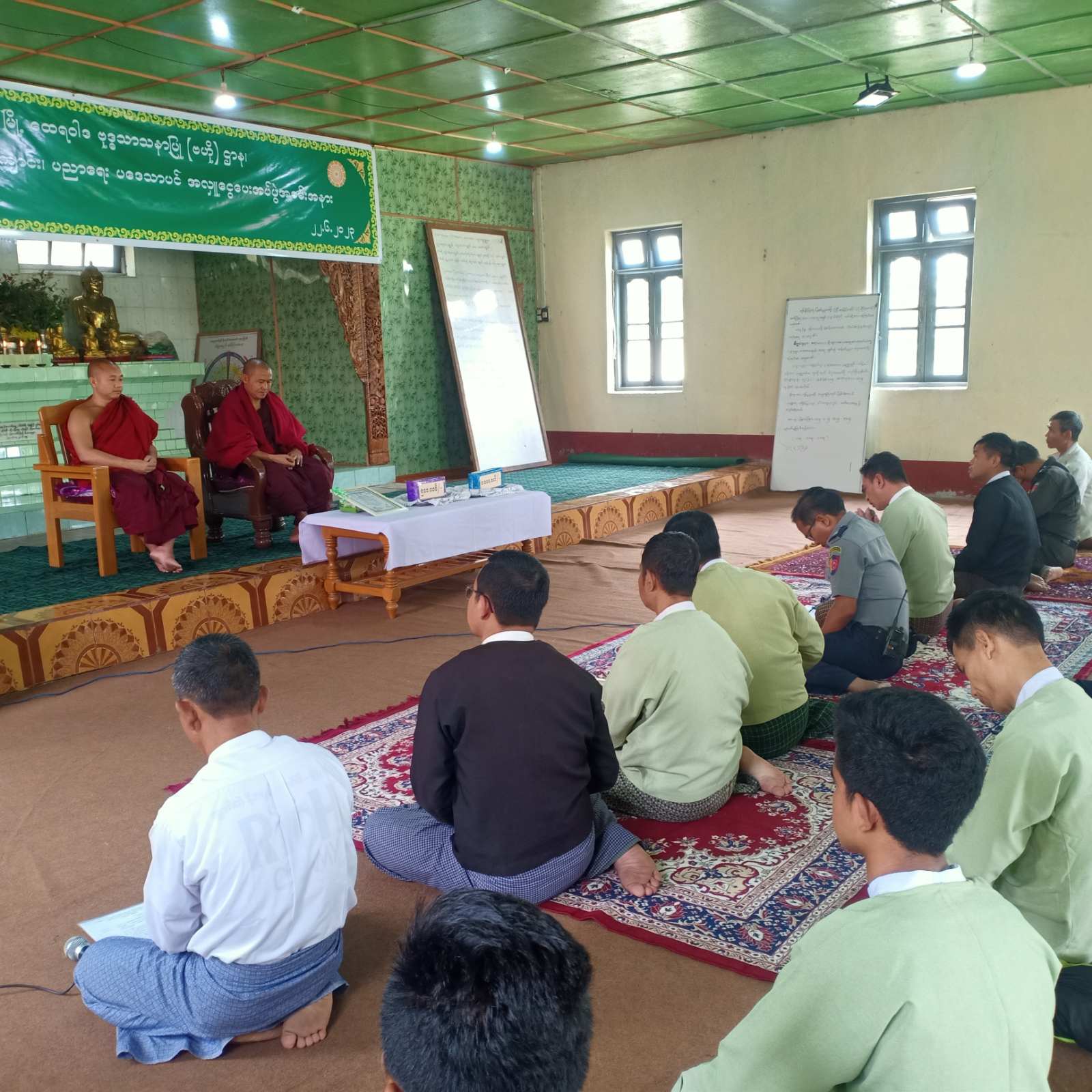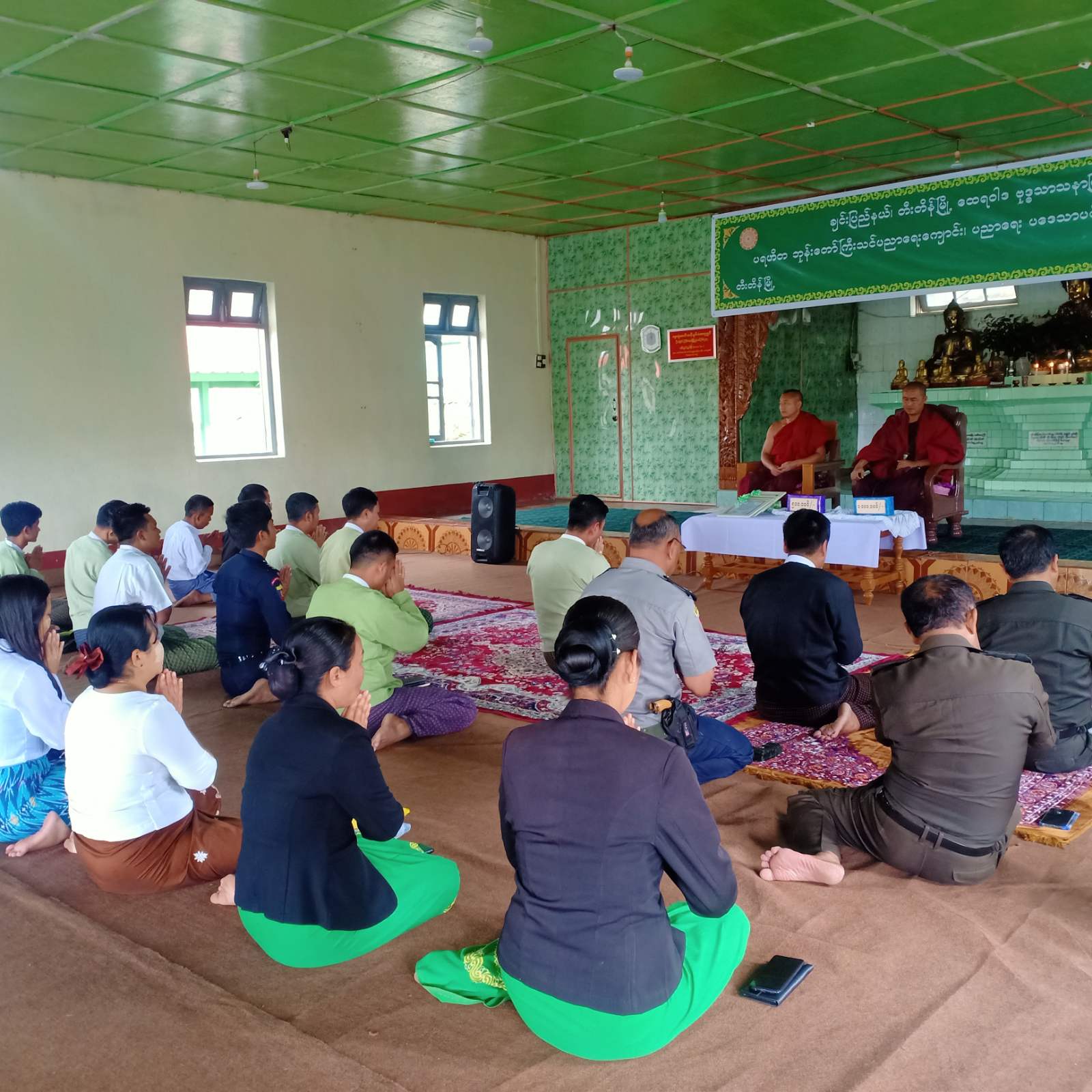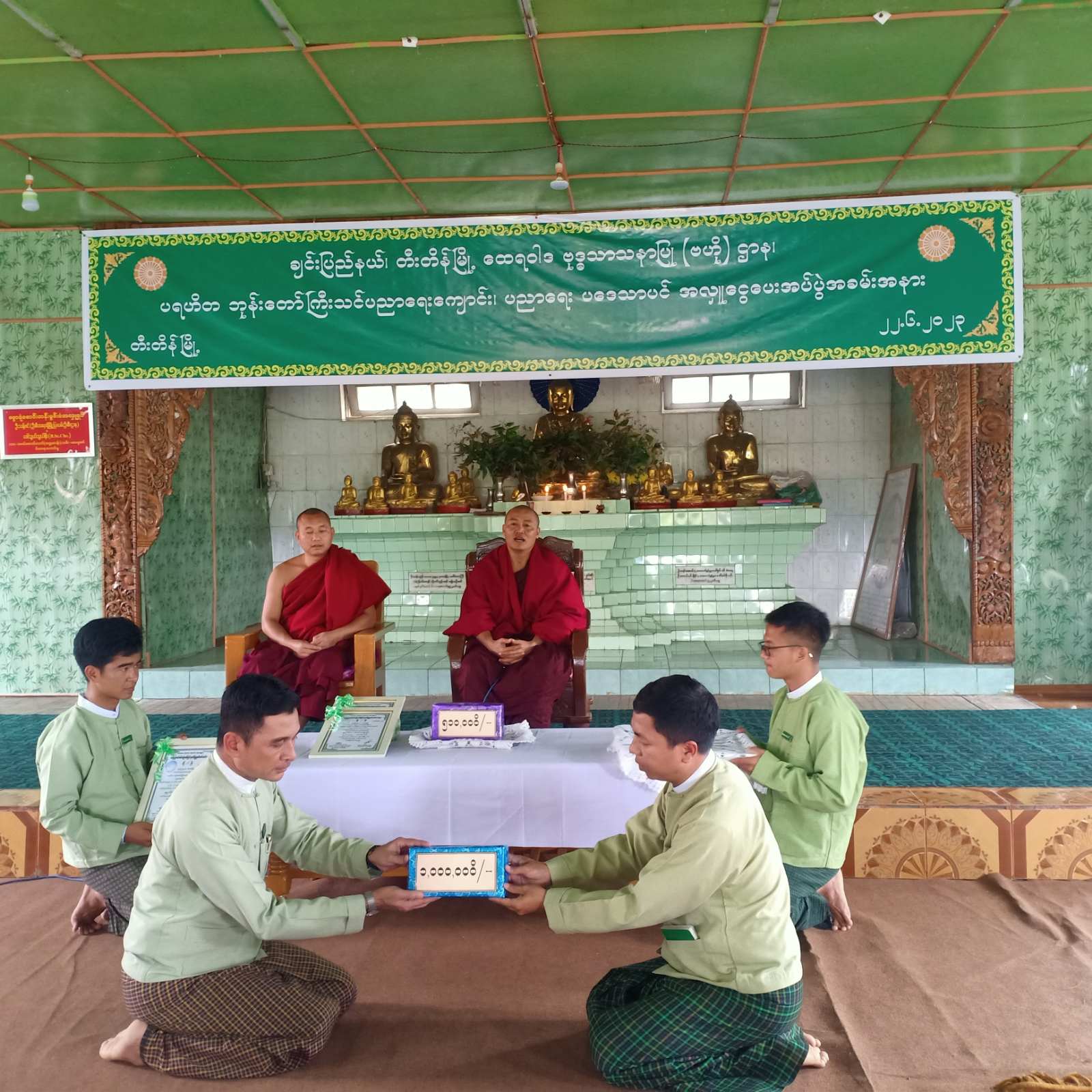 မတည်အလှူရှင်များဖြစ်သော ဒေါက်တာသက်ဖြိုးအောင်(မန္တလေးမြို့)၊ ဦးမင်းပန်းမွှေး+ဒေါ်သီတာစန်း (မြဝတီမြို့)နှင့် ခရိုင်/မြို့နယ်ဌာနဆိုင်ရာများကိုယ်စား မြို့နယ်စီမံအုပ်ချုပ်ရေးအဖွဲ့ဥက္ကဋ္ဌ ဦးဖြိုးဝင်းသန်း၊ ခရိုင်လဝကမှူးဦးမိုးသူနှင့် ခရိုင်ရဲမှူးကြီးဦးကိုကိုတို့က ပေးအပ်ခဲ့သည်။ ဆက်လက်၍ ဆရာတော်ဘဒ္ဒန္တဝါသေဌ (မဟာသန္ဓမ္မဇောတိကဓဇ)က ဩဝါဒစကားချီးမြင့်ပြီး ခရိုင်စီမံအုပ်ချုပ်ရေးအဖွဲ့ဥက္ကဋ္ဌက ကျေးဇူးတင်စကား ပြောကြားခဲ့ကြောင်း သိရသည်။