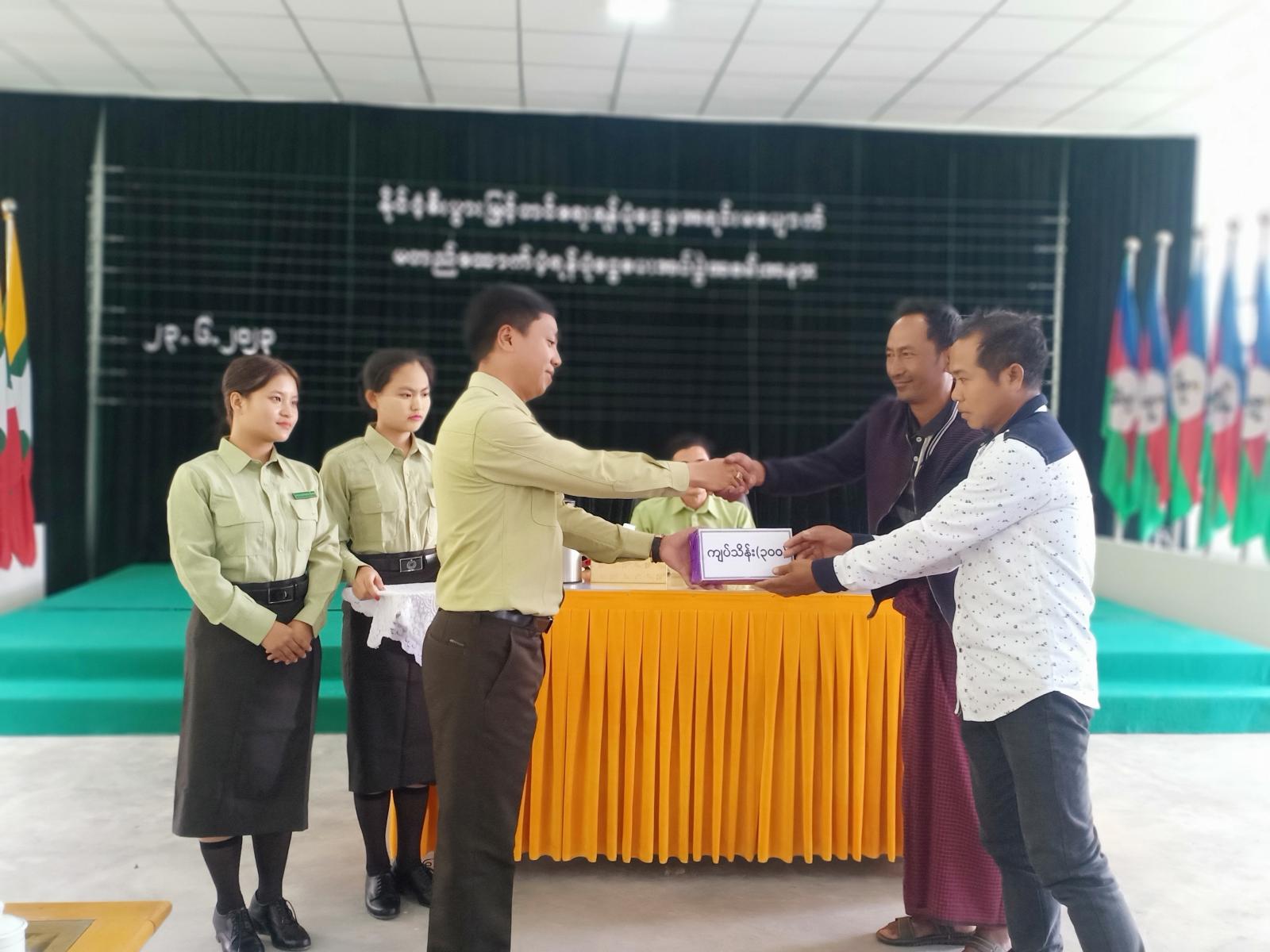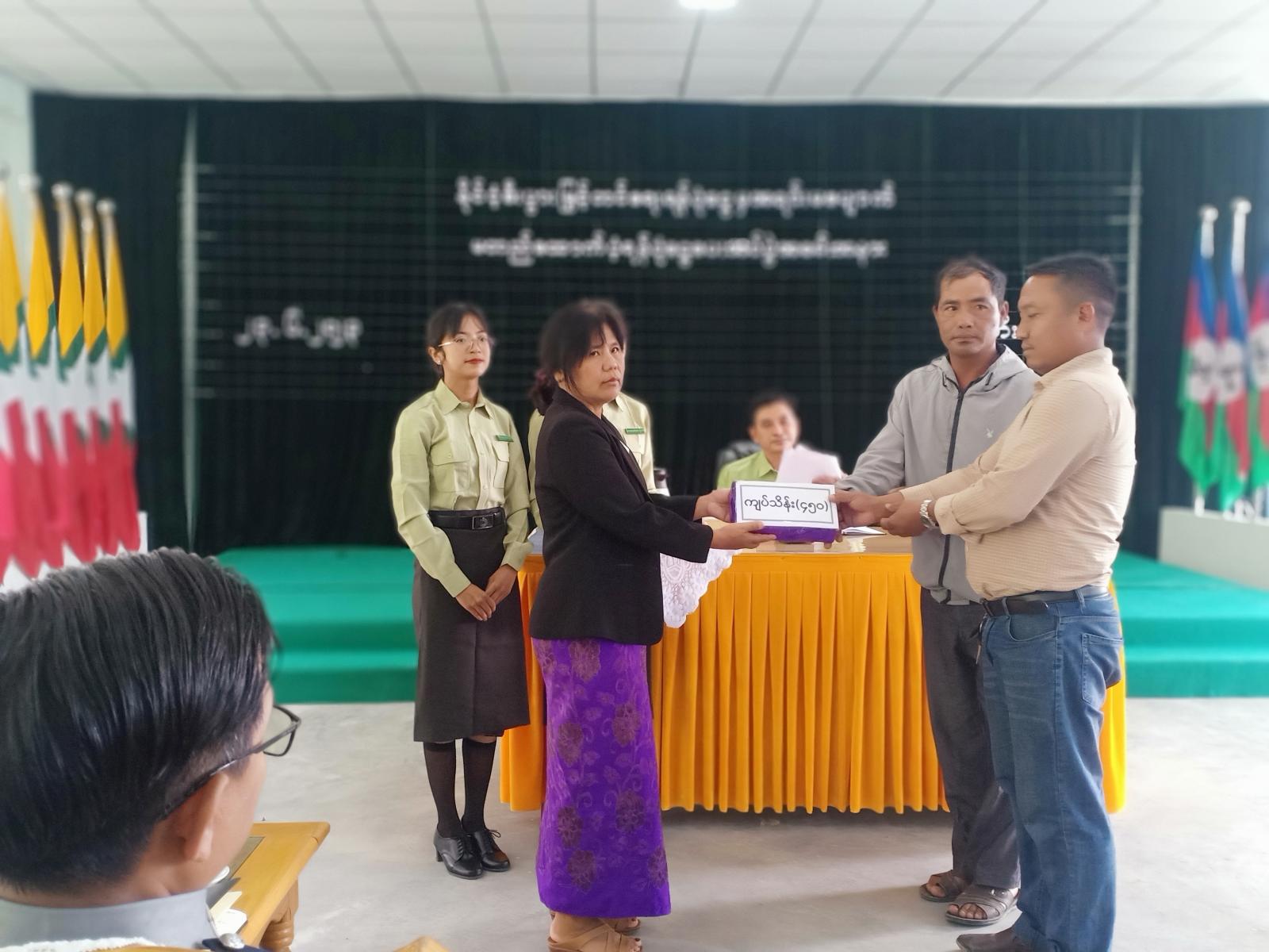 ဆက် လက်၍နိုင်ငံ့စီးပွားမြှင့်တင်ရေးရန်ပုံငွေဖြင့် မွေးမြူရေးလုပ်ငန်းဆောင်ရွက်မည့် ဆိုင်းဇန်၊ လိုင်လိုး၊ လိုင်တွီးဂေါင်မွာလ်ကျေးရွာ စီမံကိန်းကော်မတီများနှင့် ကျေးရွာအိမ်ထောင်စုများအား ခရိုင်ကျေးရွာစီမံကိန်းကြီးကြပ်မှု ကော်မတီဝင်များ၊မြို့နယ်ကျေးရွာစီမံ ကိန်းကြီးကြပ်မှုကော်မတီဥက္ကဋ္ဌဦးဖြိုး ဝင်းသန်းနှင့်တာဝန်ရှိသူတို့က ပေးအပ်ခဲ့သည်။