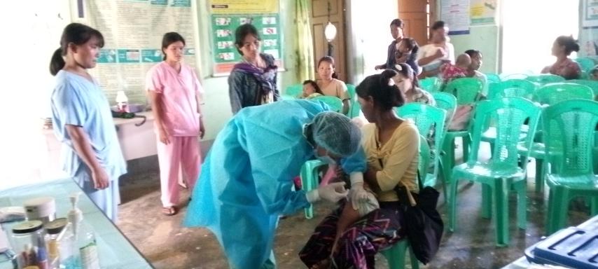 ထိုသို့ဆေးထိုးနှံခြင်း ဆောင်ရွက်ရာ မြို့နယ်မိခင်နှင့်ကလေးကျန်းမာရေးဌာန၊ ကျန်းမာရေးမှူး အဆင့်(၁) ဒေါ်လုဂျာ၊ မြို့နယ်ဘက်စုံသားဖွားဆရာမ ဒေါ်ဘောက်ဆိုင်းတို့က ကျန်းမာရေးနှင့် ဆိုင်သော အသိပညာ ဗဟုသုတများ ရှင်းလင်းပြောကြားခြင်း၊ သက်ဆိုင်ရာကျန်းမာရေးဝန်ထမ်းများက (၁)နှစ်အောက် ကလေးငယ်များအား ပေါင်ချိန်ပေးခြင်း၊ ဆေးမှတ်တမ်းများ ရေးသွင်းခြင်း ဖြင့် ကျန်းမာရေးစစ်ဆေးကာ မွေးကင်းစမှ (၂)အောက် ကလေးငယ်များအား ဘီစီဂျီ၊ အသည်း ရောင် အသားဝါ(ဘီ)၊ ပိုလီယို၊ ပြင်းထန်အဆုတ်ရောင် (ပီစီဂျီ)၊ ပြင်းထန်ဝမ်းလျှောဝမ်းပျက် (ရိုတာ)၊ ဆုံဆို့ - ကြက်ညာ- မေးခိုင်-ဦးနှောက်အမြှေးရောင် (ငါးမျိုးစပ်ကာကွယ်ဆေး)၊ ဝက်သက်၊ ဂျိုက်သိုး၊ ဂျပန်ဦးနှောက်ရောင် စသည့်ကာကွယ်ဆေးများကို အသက်အရွယ်အလိုက် ထိုးနှံပေးခဲ့ ကြောင်း သိရသည်။