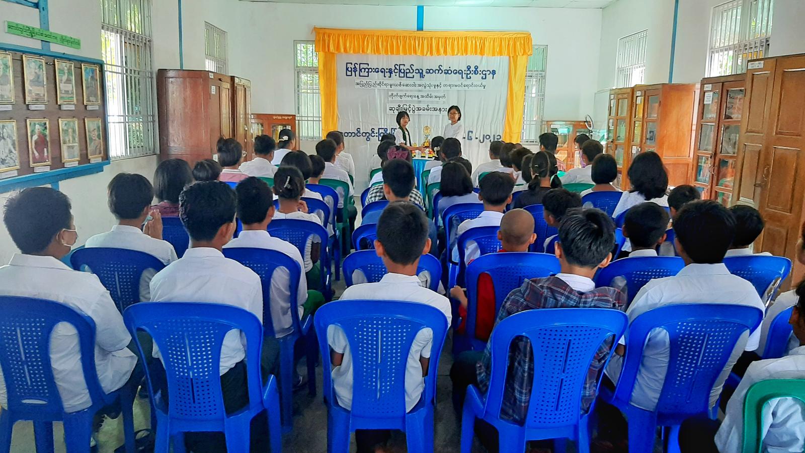 အဆိုပါအခမ်းအနားတွင် ပြန်ကြားရေးနှင့်ပြည်သူ့ဆက်ဆံရေးဦးစီးဌာန မြို့နယ်ဦးစီးမှူး ဒေါ်အေးမိုးမိုးမြင့်က ကျောင်းသား၊ ကျောင်းသူလူငယ်လေးများ ငယ်စဉ်ကပင် မူးယစ်ဆေးဝါးအန္တရာယ်၊ မူးယစ်ဆေးဝါးသုံးစွဲမှုကြောင့် ဖြစ်ပေါ်နိုင်သည့် ဆိုးကျိုးများ၊ လူတိုင်းမူးယစ်စေတတ်သည့် ဆေးဝါးများ ရှောင်ရှားရမည့် အချက်များအား သိရှိစေရန်ရည်ရွယ်၍ ပညာရေးဌာနနှင့်ပူးပေါင်း၍ မြို့မအခြေခံပညာအလယ်တန်းကျောင်းမှ အလယ်တန်းအဆင့် ကျောင်းသား၊ ကျောင်းသူများအား ဉာဏပြိုင်ပွဲများ ကျင်းပပြုလုပ်ပေးခြင်းဖြစ်ကြောင်း ရှင်းလင်းပြောကြားခဲ့ပြီး စာစီစာကုံးပြိုင်ပွဲ၊ ဉာဏ်စမ်းပဟေဠိပြိုင်ပွဲ၊ ပန်းချီပြိုင်ပွဲများတွင် ပထမဆု၊ ဒုတိယဆု၊ တတိယဆုရရှိကြသည့် ကျောင်းသား၊ ကျောင်းသူများကို တာဝန်ရှိသူများက ဆုများအသီးသီးပေးအပ် ချီးမြှင့်ခဲ့သည်။
