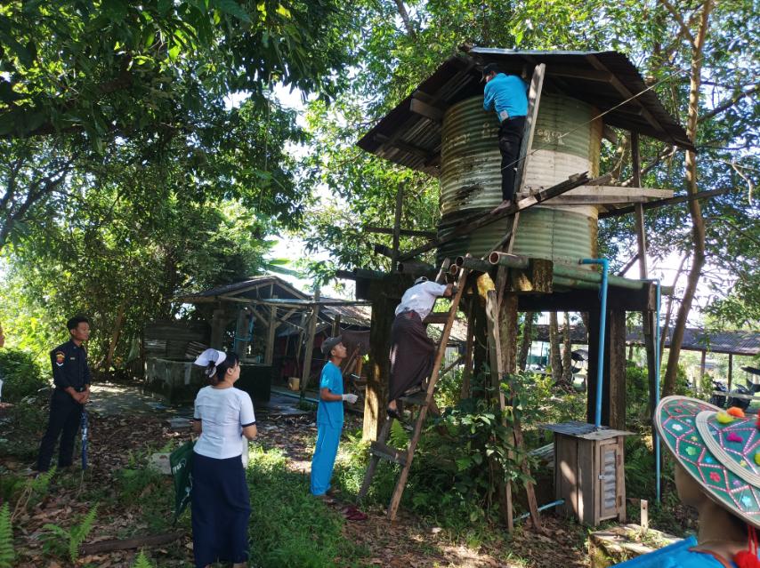 အဆိုပါ လုပ်ငန်းဆောင်ရွက်ရာတွင် ပုံး၊ မြေအိုး၊ တာရာ၊ ရေကန်အဟောင်းနှင့် ရေတိုင်ကီ အဟောင်းများရှိ ညစ်ညမ်းရေများကို သွန်ပေးခြင်း၊ အဖုံးမပါသော ရေအိုး၊ ရေကန်များကို ဖုံးပေးခြင်း၊ ပိုးလောက်လန်း ရှိ/မရှိ စစ်ဆေးပေးခြင်း၊ ရေကန်နှင့်ရေစည်များထဲတွင် အဘိတ်ဆေး ခတ်ပေးခြင်းများ ဆောင်ရွက်ခဲ့ကြသည်။
