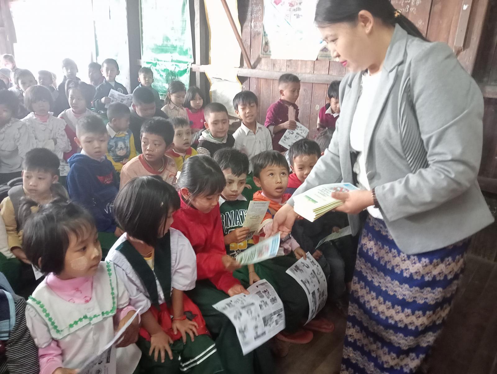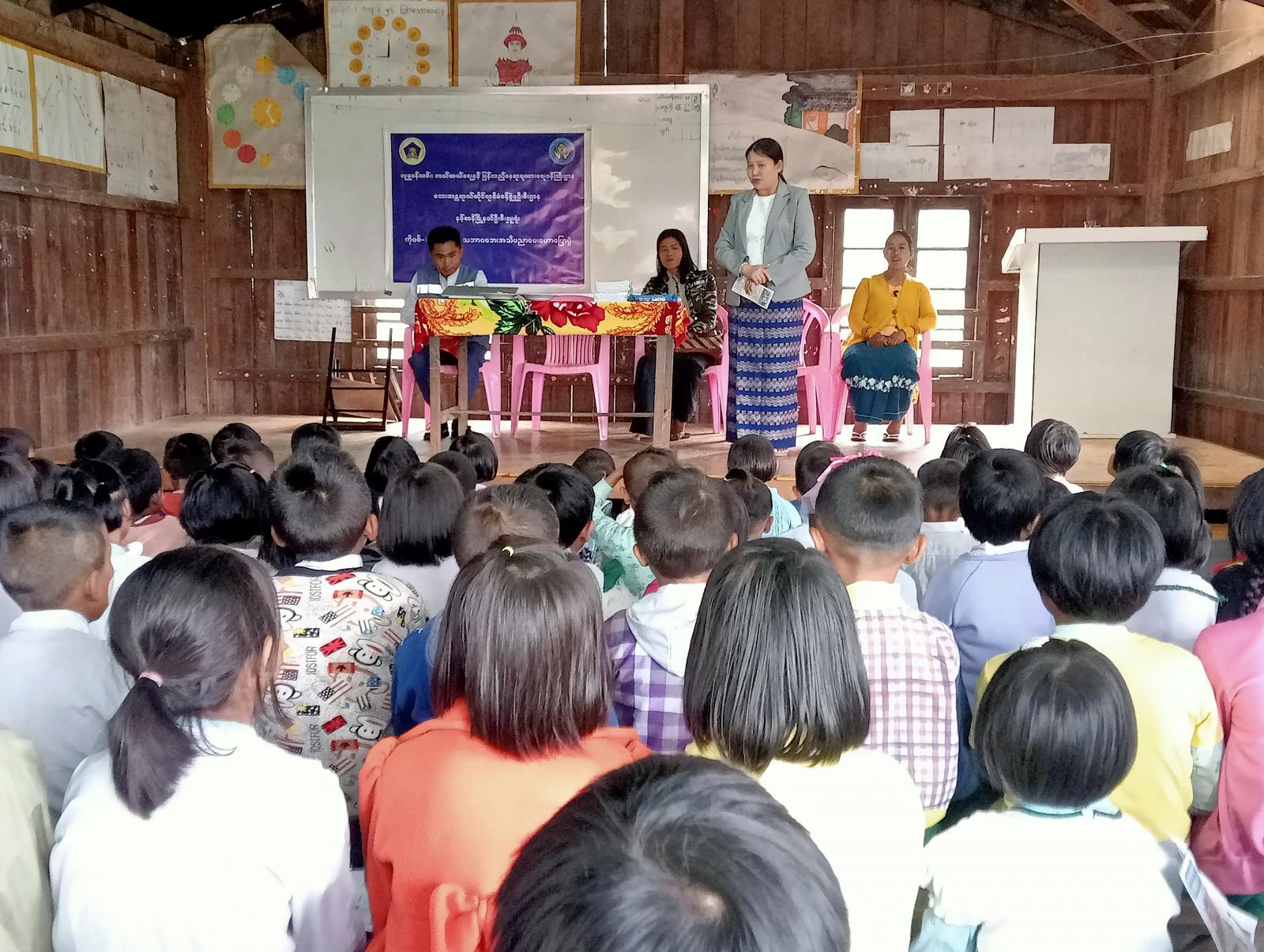 ရှေးဦးစွာ လူမှုဝန်ထမ်း၊ ကယ်ဆယ်ရေးနှင့် ပြန်လည်နေရာချထားရေးဝန်ကြီးဌာန၊ ဘေးအန္တရာယ်ဆိုင်ရာ စီမံခန့်ခွဲမှုဦးစီးဌာနမှ ဒုတိယဦးစီးမှူး ဦးထွန်းအောင်ဝေမှ သဘာဝဘေးအန္တရာယ်နှင့်သက်ဆိုင်သည့် အကြောင်းအရာများအား အကျယ်တဝင့် ရှင်းလင်းပြောကြားခဲ့ရာ၊ မုန်တိုင်းဘေးအတွက် ကြိုတင်ပြင်ဆင်ရန်လိုအပ်သည့် အချက်များ၊ မုန်တိုင်းများ၏ အန္တရာယ်ကို နားလည်သဘော လွယ်စေရန်အရောင်ဖြင့် သတိပေးစနစ်များ ရှိပါကြောင်းနှင့် အရောင်အညွှန်းနှင့် လုပ်ဆောင်ရမည့်လုပ် ငန်းများအား ရှင်းလင်းပြောကြားခြင်း၊ မုန်တိုင်းဖြစ်ပြီးချိန်တွင် ရှောင်ရှားသင့်သည့် အချက်များအား ရှင်းလင်းပြောကြားခဲ့သည်။ ဆက်လက်ပြီး ပြန်ကြားရေးနှင့်ပြည်သူ့ဆက်ဆံရေးဦးစီးဌာနမှ ဦးစီးအရာရှိ ဒေါ်နန်းထားထားလှိုင်က ယနေ့ ဇွန်လ(၂၆)ရက်နေ့သည် အပြည်ပြည်ဆိုင်ရာ မူးယစ်ဆေးဝါး အလွဲသုံးမှုနှင့် တရားမဝင်ရောင်းဝယ်မှု တိုက်ဖျက်ရေးနေ့ဖြစ်ကြောင်း၊ ကျောင်းသားသူငယ်များအနေဖြင့် မူးယစ်ဆေးဝါးများ မသုံးစွဲသင့်ကြောင်းနှင့် မူးယစ်ဆေးဝါးအန္တရာယ်အကြောင်း အသိပညာများကို ဟောပြောခဲ့ကြောင်းနှင့် ကလေးအလုပ်သမားပပျောက်ရေးအကြောင်း ဟောပြောခဲ့ကြောင်း သိရသည်။