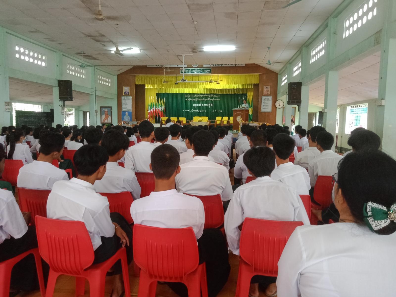 ထို့နောက် ကျောင်းအုပ်ဆရာမကြီး ဒေါ်ဒေစီက ကျေးဇူးတင်အမှာစကားပြောကြားရာတွင် ကျောင်းသား၊ ကျောင်းသူလူငယ်များ ဗဟုသုတများကို ရှာဖွေစုဆောင်းသင့်ကြောင်း၊ မိမိတို့သိမှတ်ထားသမျှ အသိပညာဗဟုသုတများကို အခြားသူများကိုလည်း ပြန်လည်မျှဝေသင့်ကြောင်း၊ သို့မှသာနိုင်ငံတော်ကို အကျိုးပြုနိုင်မည့် လူရည်ချွန်၊ လူရည်မွန်များ ဖြစ်လာမှာဖြစ်ကြောင်း ပြောကြားခဲ့သည်။ ဆက်လက်၍ ပြန်ကြားရေးနှင့်ပြည်သူ့ ဆက်ဆံရေးဦးစီးဌာနမှ ခင်းကျင်းပြသထားသော အသိပညာပေး နံရံကပ်စာစောင်များနှင့် စာအုပ်များကို တက်ရောက်လာသော ကျောင်းသား/ကျောင်းသူများမှ ကြည့်ရှူခဲ့ကြကြောင်း သိရသည်။
