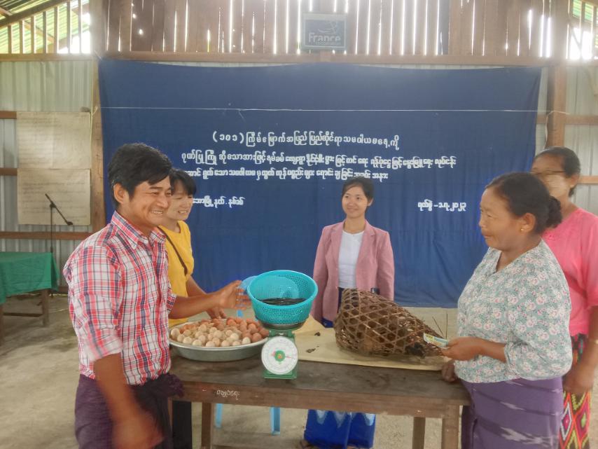အဆိုပါသမဝါယမ ထွက်ကုန်ပစ္စည်းများရောင်းချရာတွင် ကျေးရွာနိုင်ငံ့စီးပွားမြှင့်တင်ရေးရန်ပုံငွေဖြင့် မွေးမြူရေးလုပ်ငန်းများဆောင်ရွက်သော သမဝါမထွက်ကုန်ပစ္စည်းများဖြစ်သည့် အိမ်မွေး ကြက်များ၊ ကြက်ဥနှင့် ငါးများကို ဒေသခံပြည်သူများ စားဝတ်နေရေး အဆင်ပြေစေရန် သက်သာသောစျေးနှုန်းများဖြင့် ရောင်းချပေးခဲ့ကြောင်း သိရသည်။