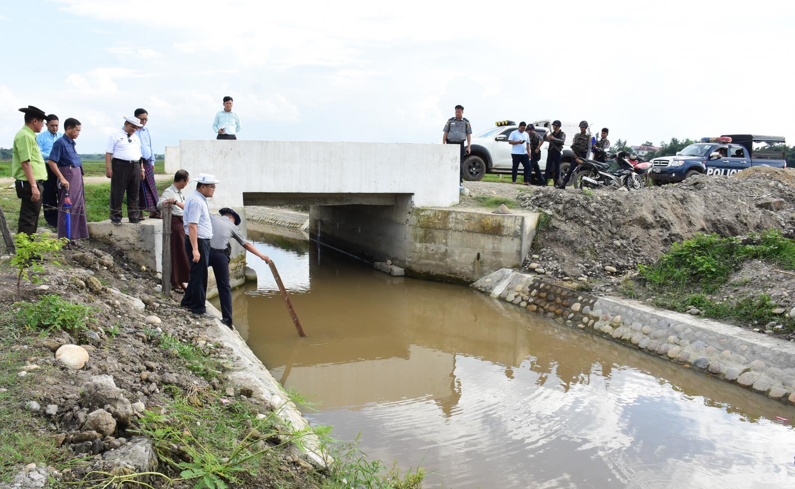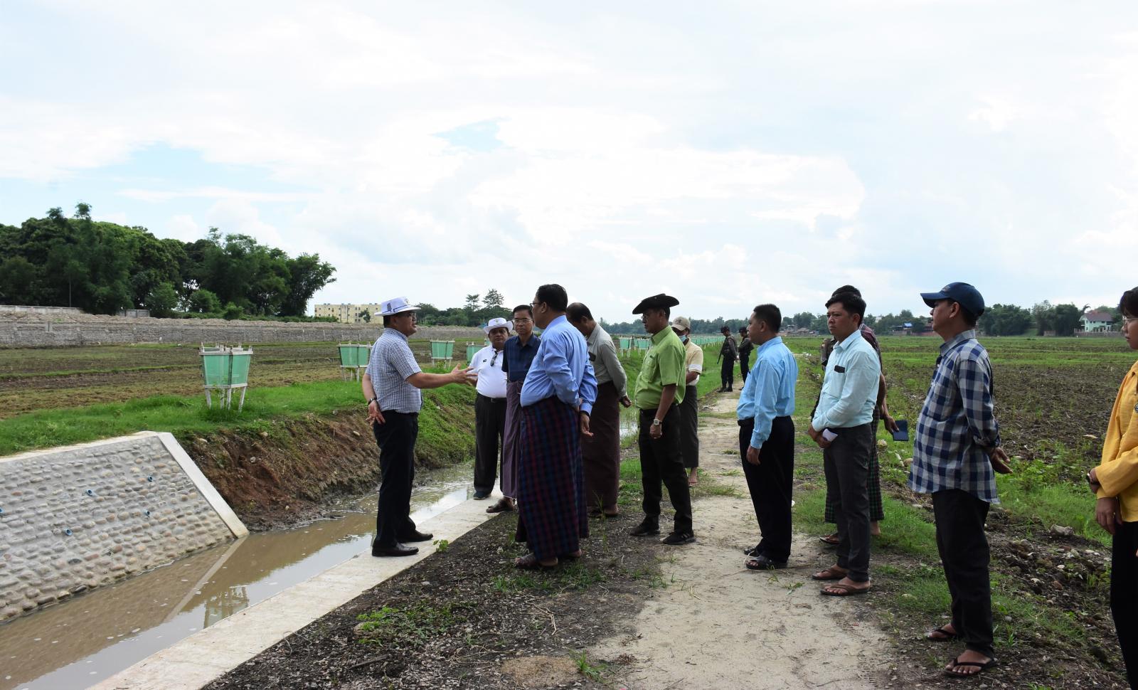 ဆက်လက်၍ အဆိုပါ စိုက်ကွက်အတွင်း လှည့်လည်ကြည့်ရှု့စစ်ဆေးပြီး ဆိုလာစနစ်ဖြင့် စက်ရေတွင်းမှ ရေသွင်းဆောင်ရွက်နိုင်မှု အခြေအနေနှင့် စိုက်ကွက်အတွင်း ဖြတ်သန်းစီးဆင်းသည့် အင်ဂျန်းခချောင်းအား လယ်ကွင်းများအတွင်း ရေကြီးရေလျှံမှုမှ ကာကွယ်နိုင်ရေးနှင့် သီးထပ်စိုက်ပျိုး ရေရရှိရေး ဆည်မြောင်းနှင့်ရေအသုံးချမှုစီမံခန့်ခွဲရေးဦးစီးဌာနမှ အရှည်ပေ ၁၀၀ တူးဖော်ဆောင်ရွက် ထားရှိမှုများအပေါ် မိုးရေပြည့်လျှံချိန်အတွင်း ပြည်နယ်ငါးဦးစီးဌာနမှ တီလားဗီးယား၊ ရွှေဝါငါးကြင်း၊ ငါးမြစ်ချင်းနှင့် ငါးခုံးမကြီး စသည့် ငါးမျိုး (၄)မျိုးအား စိုက်ထည့်၍ မွေးမြူနိုင်ရေး ချောင်းရိုးတစ်လျှောက် ရေအတိမ်အနက်နှင့် နွေရာသီရေကျန်ရှိနိုင်မည့် အခြေအနေများကို သုံးသပ်ဆွေးနွေးခဲ့ကြ ပြီး ပြည်နယ်ဝန်ကြီးချုပ်က ငါးမျိုးစိုက်ထည့်နိုင်ရေးအတွက် ချောင်းတစ်လျှောက် ဗေဒါပင်နှင့် အမှိုက် များ ရှင်းလင်းဆောင်ရွက်နိုင်ရေး ညှိနှိုင်းဆောင်ရွက်ပေးခဲ့သည်။