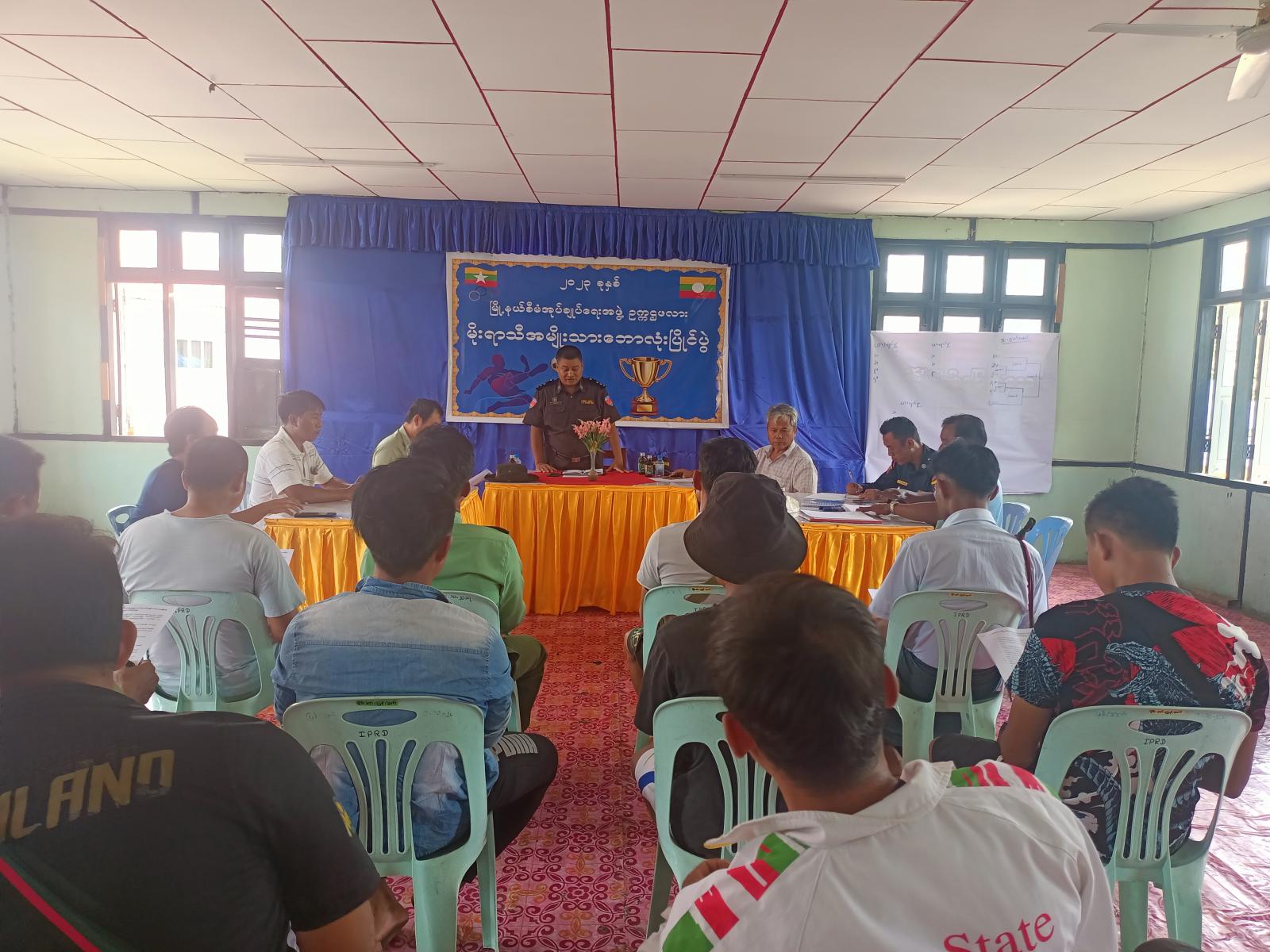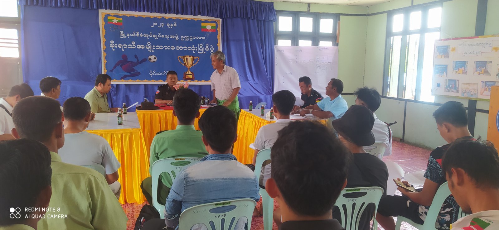 ရှမ်းပြယ်နယ်(အရှေ့ပိုင်း)၊ ကျိုင်းတုံခရိုင်၊ မိုင်းခတ်မြို့နယ်တွင် ၂၀၂၃ ခုနှစ် မိုင်းခတ်မြို့နယ် စီမံအုပ်ချုပ်ရေးအဖွဲ့ဥက္ကဋ္ဌ ဖလားအမျိုးသားအလွတ်တန်း ဘောလုံးပြိုင်ပွဲ အခမ်းအနားကို စည်းကမ်းထိန်းသိမ်းရေးနှင့်အညီ စနစ်တကျကျင်းပနိုင်ရေးအတွက် လုပ်ငန်းညှိနှိုင်း အစည်းအဝေးကို ယနေ့နံနက် ၁၀ နာရီ အချိန်က မိုင်းခတ်မြို့နယ် ပြန်ကြားရေးနှင့်ပြည်သူ့ဆက်ဆံရေးဦးစီးဌာန (Community Centre) ခန်းမ၌ ပြုလုပ်ခဲ့သည်။