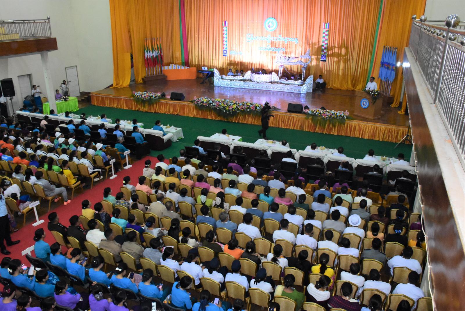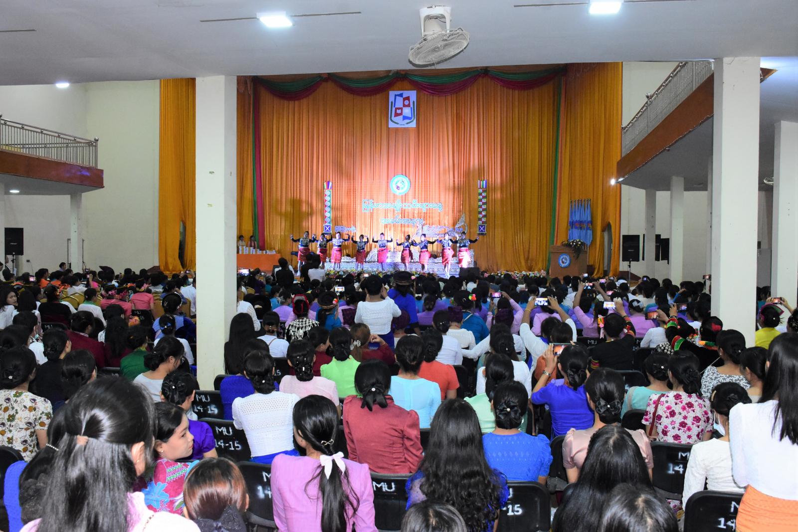 ယင်းနောက် ပြည်နယ်အမျိုးသမီးရေးရာအဖွဲ့အတွင်းရေးမှူးက ပြည်နယ်အတွင်း အမျိုးသမီးများဘဝဖွံ့ဖြိုးတိုးတက်ရေးနှင့် ကာကွယ်စောင့်ရှောက်ရေးလုပ်ငန်းများ ဆောင်ရွက်နေမှုကို ရှင်းလင်းတင်ပြပြီး လူမှုဝန်ထမ်းဦးစီးဌာန၊ အမှတ်(၁) မူလတန်းကြိုကျောင်းမှ သမီးငယ်လေးများက မြန်မာအမျိုးသမီးအလှတေးသီချင်းဖြင့် သရုပ်ဖော် ကပြဖျော်ဖြေတင်ဆက်ကြသည်။