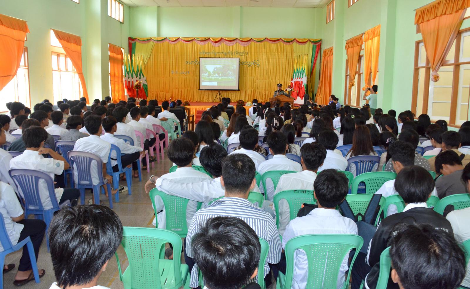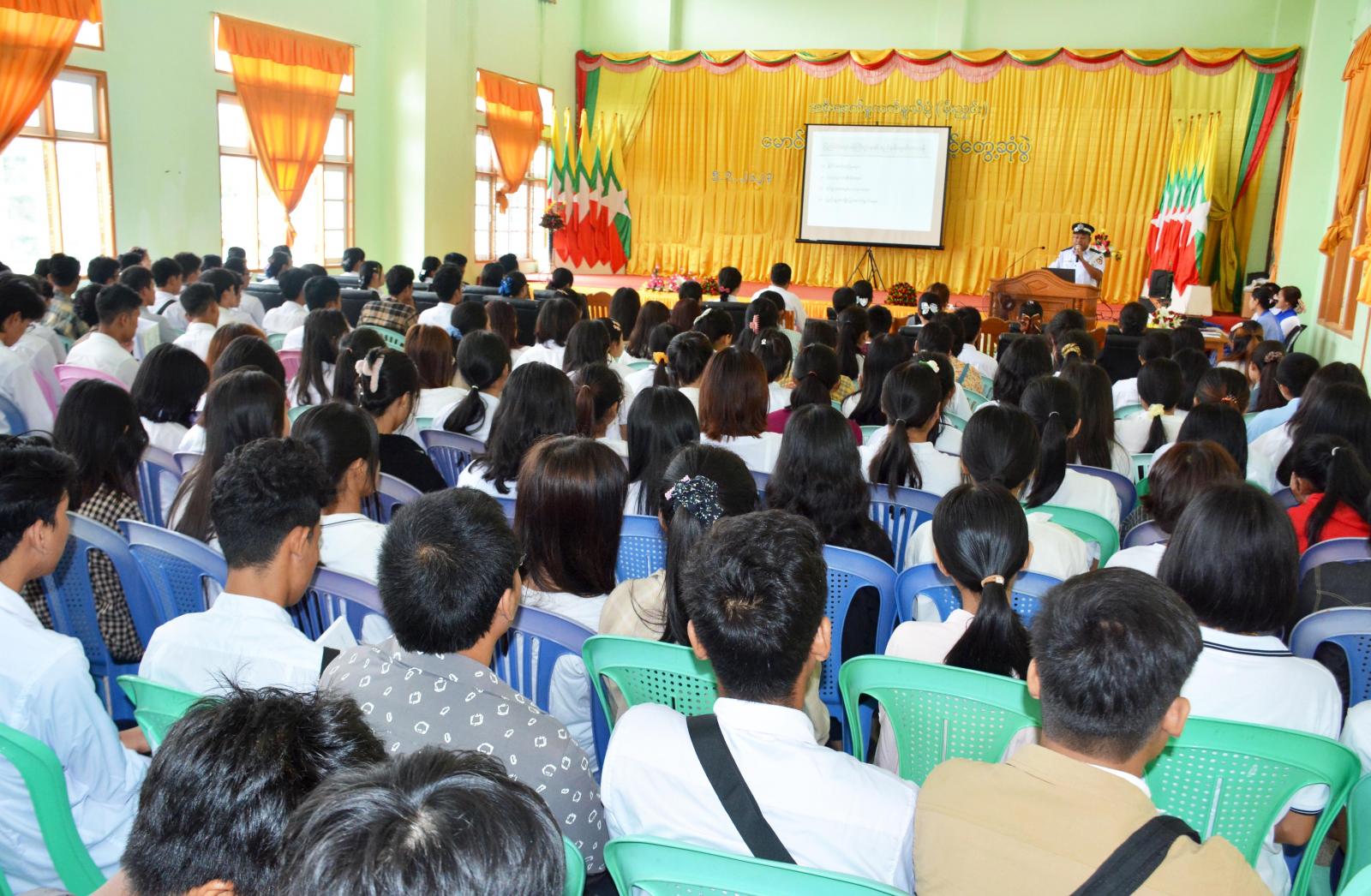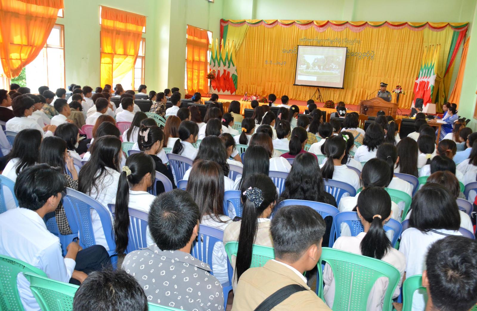 ကချင်ပြည်နယ်၊ မိုးညှင်းခရိုင် အစိုးရစက်မှုလက်မှုသိပ္ပံကျောင်း(မိုးညှင်း)တွင် ယာဉ်စည်းကမ်း၊ လမ်းစည်းကမ်းနှင့် လူကုန်ကူးမှုတားဆီးနှိမ်နင်းရေး အသိပညာဟောပြောပွဲကို ယမန်နေ့နံနက် (၉)နာရီခွဲက ဘက်စုံသုံးခန်းမ၌ ကျင်းပခဲ့သည်။