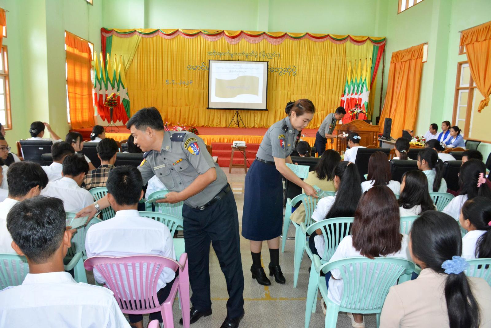 ထို့နောက် အမှတ်(၃) လူကုန်ကူးမှုတားဆီးနှိမ်နင်းရေးရဲတပ်ဖွဲ့စိတ်မှ တပ်ဖွဲ့ဝင်များက အဆိုပါဟောပြောပွဲသို့ တက်ရောက်လာကြသည့် ကျောင်းအုပ်ဆရာကြီး၊ ဆရာ/ဆရာမများနှင့် ကျောင်းသား၊ကျောင်းသူများအား အသိပညာပေး လက်ကမ်းစာစောင်များကို လက်ဝယ်အရောက် ဖြန့်ဝေပေးခဲ့ကြောင်း သိရသည်။