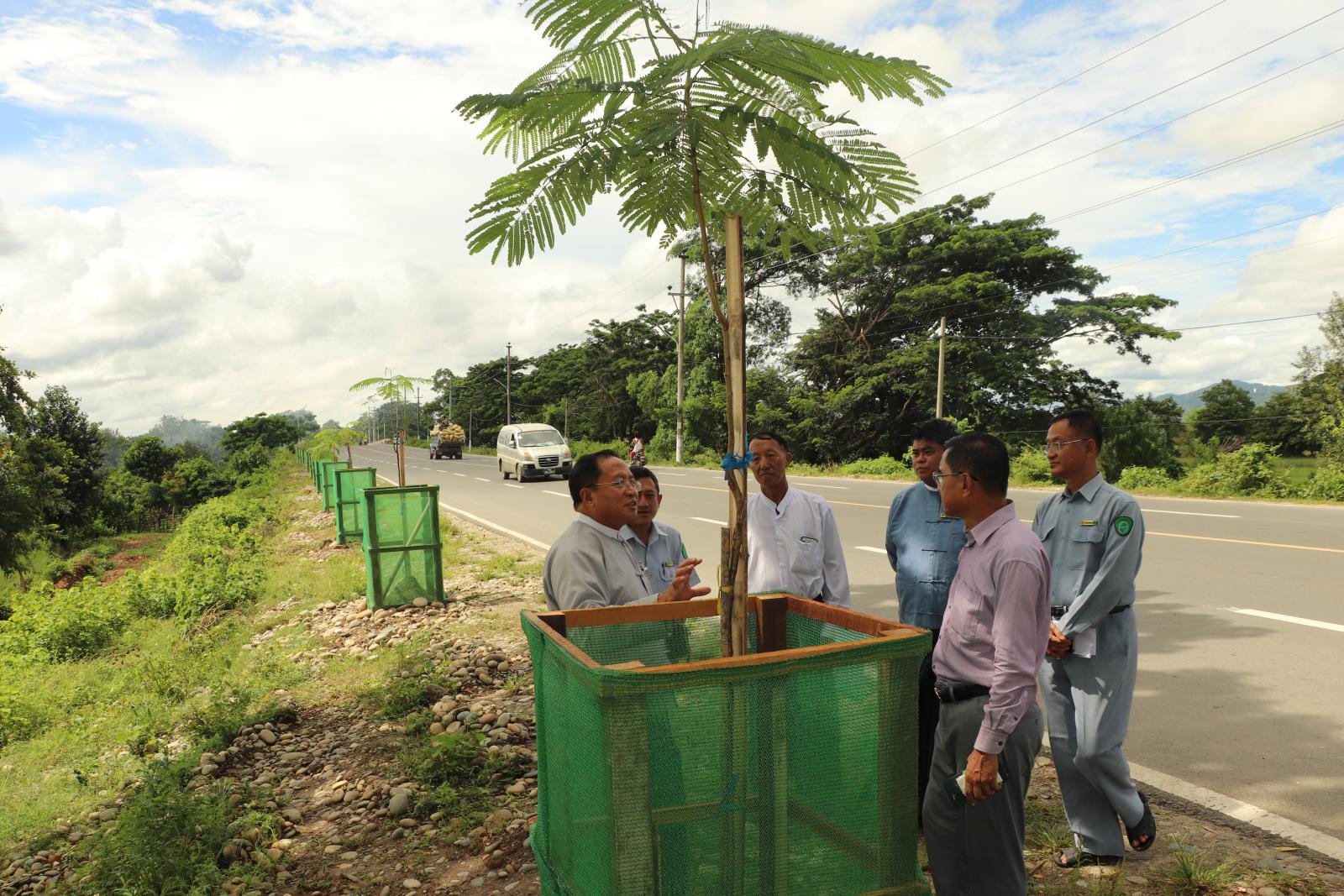 ထိုသို့ ကွင်းဆင်းစစ်ဆေးရာတွင် ပြည်နယ်သယံဇာတရေးရာဝန်ကြီး ဦးတိန့်ဆောင်သည် ပြည်နယ် စည်ပင်သာယာရေးအဖွဲ့၊ ညွှန်ကြားရေးမှူး ဦးကျော်လင်း၊ မြို့နယ်စည်ပင်သာယာရေးအဖွဲ့ တာဝန် ရှိသူများနှင့် အတူ မြစ်ကြီးနား- ဝိုင်းမော်သွားလမ်း နမ့်မြစ်ခတံတားအနီးမှ စတင်၍ ဝိုင်းမော်မြို့ အဝင် ဆိုင်းဘုတ်အထိ လမ်းဘေးဝဲ/ယာတို့တွင် စိန်ပန်းနီပင်များ စိုက်ပျိုးထားရှိမှုကို ကြည့်ရှုစစ်ဆေးခဲ့ကြ ပြီး ဝိုင်းမော်မြို့ အမှတ် (၁) ရပ်ကွက်အတွင်းရှိ ဧရာမော်ပန်းခြံအား အများ ပြည်သူ လွတ်လပ်ပျော်ရွှင်စွာ အပန်းဖြေအနားယူနိုင်ရေးအတွက် ပန်းခြံအားမြို့ အင်္ဂါရပ်နှင့်အညီ တတိယအဆင့် အဆင့်မြှင့် တင်ခြင်းလုပ်ငန်းများ စီမံကိန်းများ ဖြစ်သည့် ပန်းခြံရှေ့ကွန်ကရစ်လမ်းခင်းခြင်း၊ အုတ်တံတိုင်းကာရံ ခြင်း၊ ပန်းခြံ၏ တိုးချဲ့မြေဧရိယာ (၂၂၀)ပေတွင် မြေယာရှုခင်းပြုပြင်၍ ပန်းအဝိုင်းပြုလုပ် ဆောင်ရွက်သွားမည့်အစီအစဉ်များ၊ ကွန်ကရစ်လျှောက်လမ်းများ တိုးချဲ့ဆောင်ရွက်နိုင်ရေး ပြင်ဆင်ဆောင်ရွက် ထားရှိမှု အခြေအနေများကို လှည့်လည်ကြည့်ရှု စစ်ဆေးသည်။