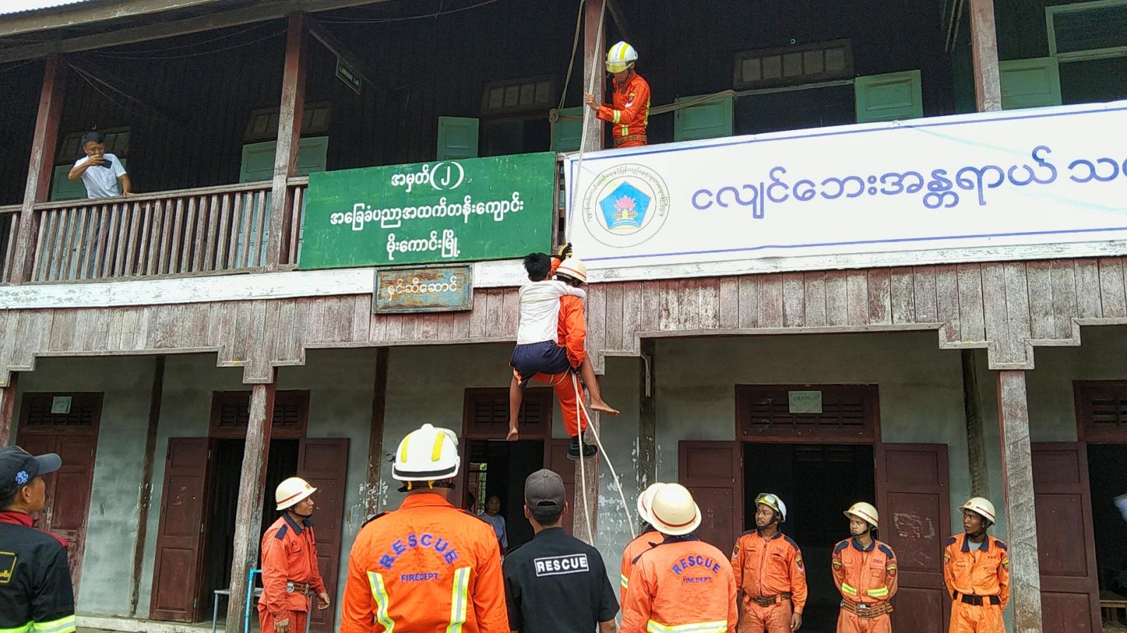 ကချင်ပြည်နယ် ဘေးအန္တရာယ်ဆိုင်ရာ စီမံခန့်ခွဲမှုဦးစီးဌာနက ငလျင်ဘေးအန္တရာယ် သဏ္ဌာန်တူဇာတ်တိုက်လေ့ကျင့်ခြင်းကို ယမန်နေ့ နံနက်(၁၀)နာရီတွင် အမှတ်(၁)အခြေခံပညာ အထက်တန်းကျောင်း၌လည်းကောင်း၊ နေ့လယ်(၂)နာရီတွင် အမှတ်(၂)အခြေခံပညာ အထက်တန်းကျောင်း၌လည်းကောင်း ကျင်းပ ခဲ့သည်။