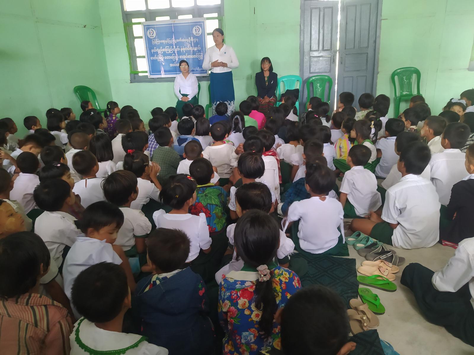ထိုသို့ဆောင်ရွက်ရာတွင် ပြန်ကြားရေးနှင့်ပြည်သူ့ဆက်ဆံရေးဦးစီးဌာနမှ ဦးစီးအရာရှိ ဒေါ်ခင်မူမူဝင်းမှ ကလေးငယ်များအား မူးယစ်ဆေးဝါးအန္တရာယ် တားဆီးကာကွယ်ရေးအကြောင်း အသိပညာပေးဟောပြောခဲ့ပြီး၊ မြို့နယ်စားသုံးသူရေးရာဦးစီးဌာနမှ မြို့နယ်ဦးစီးမှူး ဒေါ်အေးအေးခိုင် ကစားသုံးရန်မသင့်သော အစားအစာနှင့်ပတ်သက်၍ဆောင်ရန်၊ ရှောင်ရန်များ၊ စားသုံးသူကာကွယ်ရေးဆိုင်ရာ အသိပညာပေး ဟောပြောခဲ့သည်။