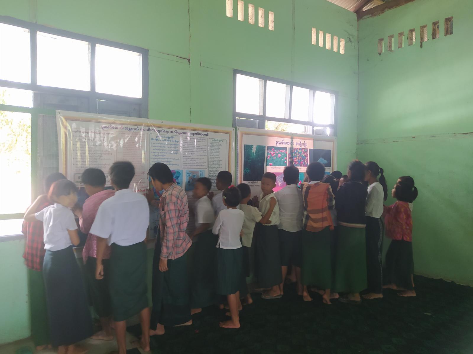 ဆက်လက်၍ ပြန်ကြားရေးနှင့်ပြည်သူ့ဆက်ဆံရေးဦးစီးဌာနမှ ဒုတိယဦးစီးမှူး ဒေါ်ခင်ခင်မာက စာဖတ်ခြင်းဖြင့် ရရှိလာမည့် အကျိုးကျေးဇူးများအကြောင်းအား ရှင်းလင်းပြောကြားခဲ့ပြီးက လေးများကိုယ်ကာယ ဥာဏစွမ်းရည်များဖွံ့ဖြိုးစေရေး၊ အချင်းချင်းပူးပေါင်း ဆောင်ရွက်တတ်စေရေး၊ တစ်ဦးနှင့်တစ်ဦး ချစ်ခင်ရင်းနှီးမှုများ ရရှိစေရေးရည်ရွယ်ကာ ကိုယ်လက်လှုပ်ရှားမှုများပြုလုပ်ပြီး၊ ကလေးငယ်များအား ရုပ်ပုံစာအုပ်၊ စက္ကူပြဇာတ်၊ ဘုတ်ပြားပြဇာတ်များဖြင့် ပုံပြင်ပြောပြခြင်းများ ဆောင်ရွက်ခဲ့ကြောင်းနှင့်မူးယစ်ဆေးဝါးအန္တရာယ် တားဆီးကာကွယ်ရေး အသိပညာပေး နံရံကပ်စာစောင်များ ပြသပေးခဲ့ကြောင်း သိရသည်။