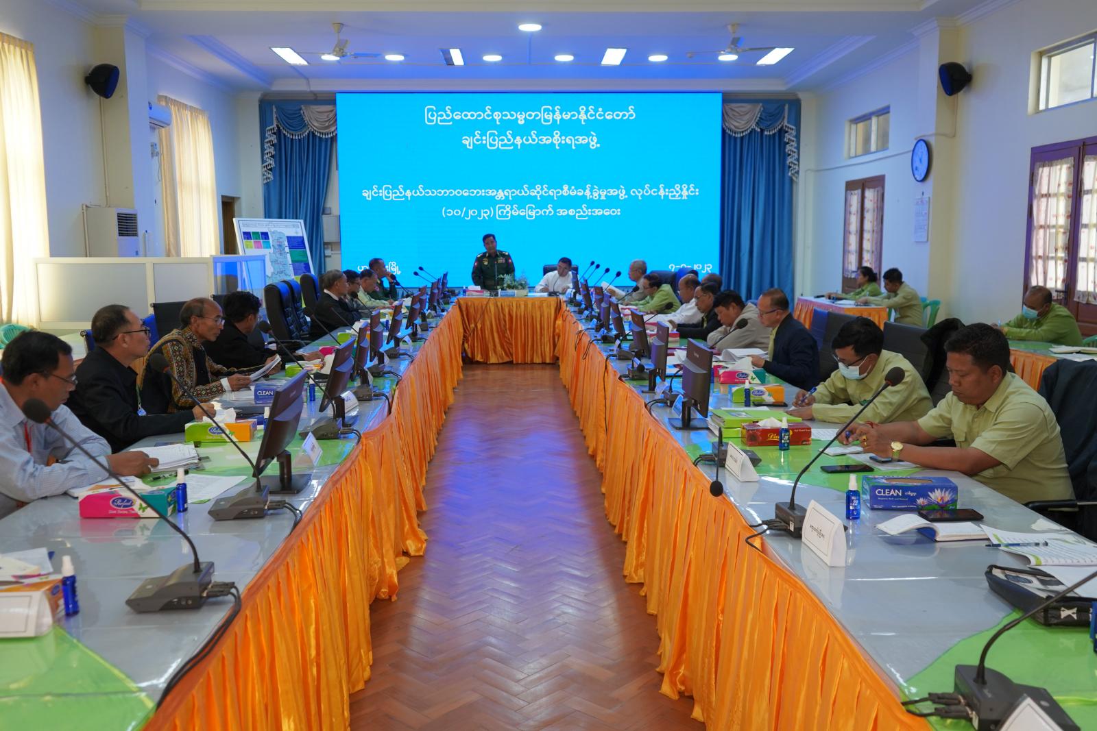 ချင်းပြည်နယ် သဘာဝဘေးအန္တရာယ်ဆိုင်ရာ စီမံခန့်ခွဲမှုအဖွဲ့ လုပ်ငန်းညှိနှိုင်း အစည်းအဝေး (၁၀/၂၀၂၃)ကို ယမန်နေ့ မွန်းလွဲ ၁ နာရီက ဟားခါးမြို့၊ ပြည်နယ် အစိုးရအဖွဲ့ရုံး အစည်းအဝေးခန်းမ၌ ကျင်းပရာ ကာကွယ်ရေးဝန်ကြီးဌာနမှ ဒုတိယဗိုလ်ချုပ်ကြီးမင်းနိုင်နှင့် ချင်းပြည်နယ် ဝန်ကြီးချုပ် ဒေါက်တာဝုန်ဆွန်းထန်တို့ တက်ရောက်ကြသည်။