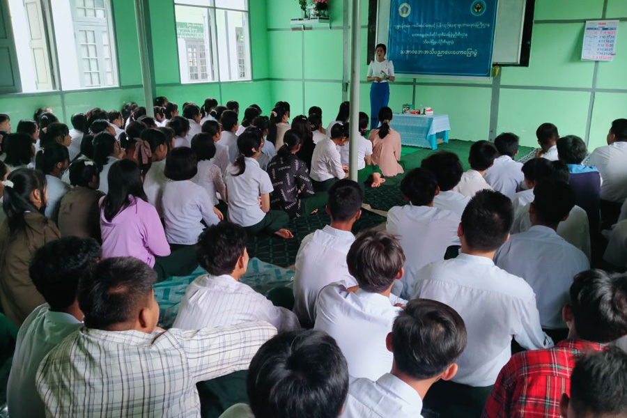 ရှေးဦးစွာ မြို့နယ်ပြန်ကြားရေးနှင့်ပြည်သူ့ဆက်ဆံရေးဦးစီးဌာန ဦးစီးအရာရှိ ဒေါ်ခင်နီလာစိုးက ကျောင်းသား၊ ကျောင်းသူလူငယ်များအနေဖြင့် အချိန်ကို အကျိုးရှိစွာ အသုံးချတတ်စေရန်၊ အမှား၊ အမှန် ဝေဖန်ပိုင်းခြားတတ်စေရန်၊ ပြင်ပဗဟုသုတများရရှိစေရန် စသည့် ရည်ရွယ်ချက်များဖြင့် ဟောပြောပွဲပြုလုပ် ဆောင်ရွက်ပေးရခြင်းဖြစ်ကြောင်း၊ လူကုန်ကူးမှုနှင့်ပတ်သက်သော အကြောင်းအရာများ၊ မူးယစ်ဆေးဝါးအန္တရာယ်ဆိုင်ရာ အကြောင်းအရာများကိုလည်းကောင်း ဘေးအန္တရာယ်ဆိုင်ရာစီမံခန့်ခွဲမှုဦးစီးဌာန ဒုတိယဦးစီးမှူး ဒေါ်မြပွင့်ဖြူက မီးဘေး၊ ရေဘေး၊ မုန်တိုင်းဘေးစသည့် ဘေးအန္တရာယ်များနှင့်ပတ်သက်၍ ဆောင်ရန်၊ ရှောင်ရန်များကိုလည်းကောင်း အသီးသီး ဟောပြောခဲ့ကြသည်။