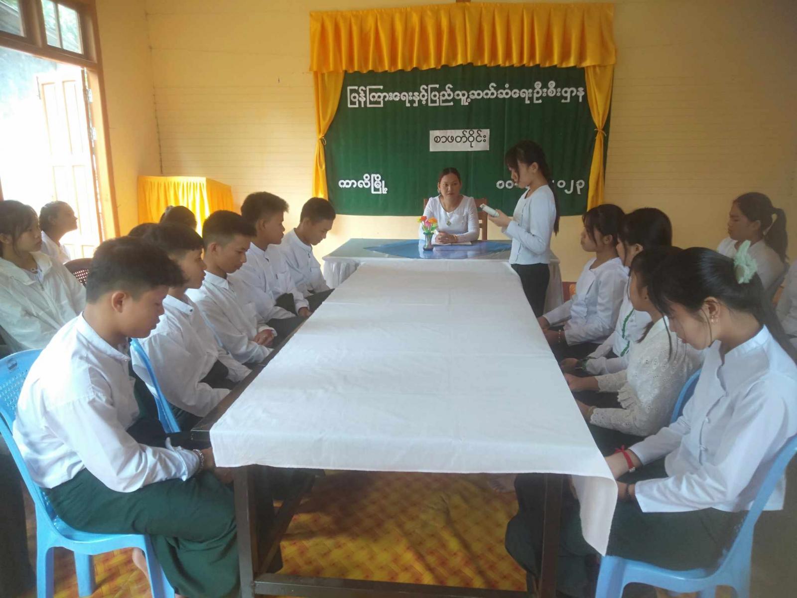 ရှေးဦးစွာ စာဖတ်ဝိုင်းတွင် ပြန်ကြားရေးနှင့်ပြည်သူ့ဆက်ဆံရေးဦးစီးဌာန မြို့ဦးစီးမှူး ဒေါ်ထင်ထင်ကျော်က မျိုးဆက်သစ်လူငယ်လူရွယ်များ အတွေးအခေါ်အယူအဆ မှန်ကန်စေရန်၊ ဉာဏ်ရည်ဉာဏ်သွေးမြင့်မားစေရန်၊ အမှား၊ အမှန်ဝေဖန်ပိုင်းခြားတက်စေရန်နှင့် စာဖတ်သည့် အလေ့အကျင့်ကောင်းများရရှိစေရန် ရည်ရွယ်၍ ဆောင်ရွက်ပေးခြင်းဖြစ်ကြောင်း ပြောကြားပြီး “ရွံစရာ မူးယစ်ဆေးဝါး ဝေးစွာရှောင်ရှား” ခေါင်းစဉ်ဖြင့် ဦးဆောင်ဖတ်ကြားပြီး Grate-10 မှ မနန်းခမ်းလိန်က “မူးယစ်ဆေးဝါးအလွဲသုံးစား၊ ဆုံးပါးအသက်တို” ခေါင်းစဉ်ဖြင့်လည်ကောင်း၊ မောင်စိုင်းဆိုင်စွမ်က “မူးယစ်ဆေးဝါးအလွဲသုံးစားမှု” ခေါင်းစဉ်ဖြင့်လည်ကောင်း၊ မနန်းလောင်ခေးက “အစက ကျွန်မနှင့် သင့်သလိုလို” ခေါင်းစဉ်းပါအကြောင်းအရာများကို ဖတ်ကြားပြီး တက်ရောက်လာကြသည့် ကျောင်းသား၊ ကျောင်းသူများက အပြန်အလှန်ဆွေးနွေးခဲ့ပြီး လူငယ်များ၏ ဆွေးနွေးချက်များကို မြို့ဦးစီးမှူး ဒေါ်ထင်ထင်ကျော်က ပြန်လည်ဆွေးနွေးပေးခဲ့ကြောင်း သိရသည်။
