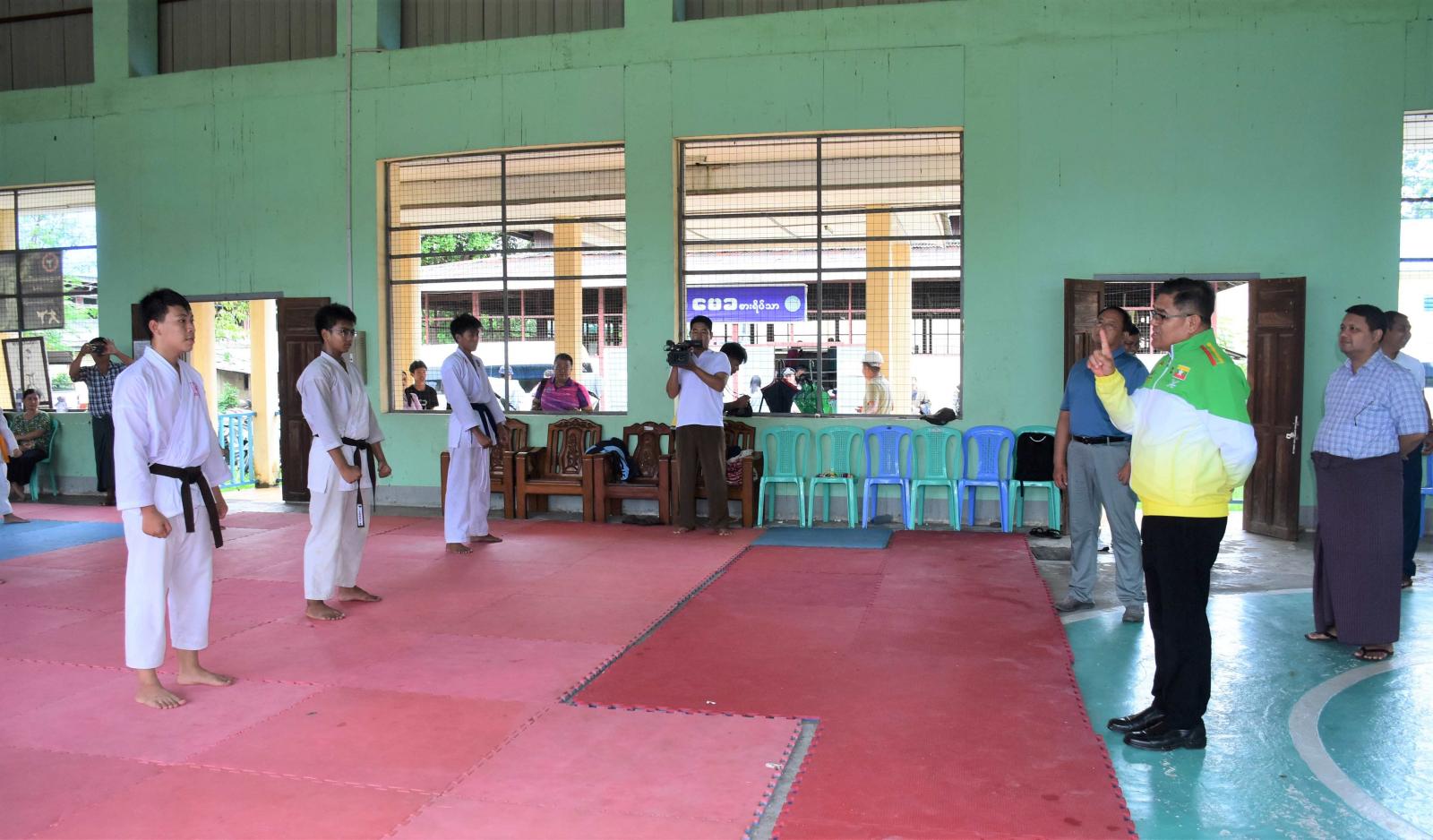 ရှေးဦးစွာ ပြည်နယ်ဝန်ကြီးချုပ်နှင့် တာဝန်ရှိသူများသည် ပြည်နယ်ပြည်သူ့အားကစားကွင်းအတွင်း မိုးလုံလေလုံအားကစားခန်းမများ၌ ပြည်နယ်လက်ဝှေ့အားကစားဆပ်ကော်မတီအဖွဲ့ တာဝန်ရှိသူများက လူငယ်လက်ရွေးစင်လက်ဝှေ့ကစားများအား စခန်းသွင်းလေ့ကျင့်ဆောင်ရွက်နေမှုအခြေအနေများကိုလည်းကောင်း၊ ပြည်နယ်ကရာတေးဒိုဆပ်ကော်မတီက လက်ရွေးစင်ကစားသမားများနှင့် လူသစ်ကစားများအား စခန်းသွင်းလေ့ကျင့်သင်ကြားနေမှုနှင့် ပြည်နယ်ဂျူဒိုအားကစားဆပ်ကော်မတီက ဂျူဒိုလက်ရွေးစင်ကစားသမားများနှင့် ကစားသမားအသစ်များအား စခန်းသွင်းလေ့ကျင့်နေမှုများကိုလည်းကောင်း လှည့်လည်ကြည့်ရှုစစ်ဆေးပြီး ပြည်နယ်ဝန်ကြီးချုပ်က စခန်းသွင်းလေ့ကျင့်နေမှုအခြေအနေများ၊ ပြိုင်ပွဲဝင်ရောက်သွားမည့် အစီအစဉ်များ၊ ပဏာမပြိုင်ပွဲများ ကျင်းပပြုလုပ်နိုင်ရေး ညှိနှိုင်းဆောင်ရွက်ပေးခဲ့ကာ လက်ဝှေ့အဖွဲ့အတွက် ထောက်ပံ့ငွေကျပ် ၅ သိန်း၊ ကရာတေးဒိုအဖွဲ့အတွက် ထောက်ပံ့ငွေကျပ် ၃ သိန်းနှင့် တိုက်ကွမ်ဒိုအဖွဲ့အတွက် ထောက်ပံ့ငွေကျပ် ၄ သိန်းကို ထောက်ပံ့ပေးအပ်ခဲ့သည်။