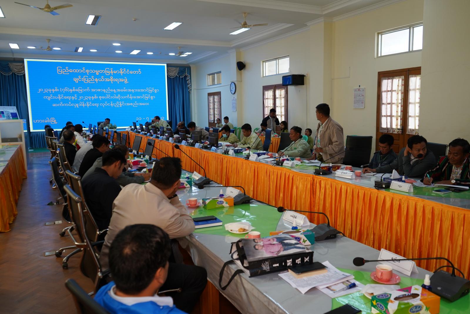 ထို့နောက် ရှင်းလင်းတင်ပြချက်များအပေါ် လုံခြုံရေးနှင့်နယ်စပ်ရေးရာဝန်ကြီးဗိုလ်မှူးကြီးဟန်ဝင်းအောင်၊ သယံဇာတရေးရာဝန်ကြီးဦးကျော်ငြိမ်းနှင့် ပြည်နယ်အစိုးရအဖွဲ့အတွင်းရေးမှူး ဦးမောင်မောင်ဆန်းတို့ ဖြည့်စွက်ရှင်းလင်းဆွေးနွေးကြပြီး ပြည်နယ်ဝန်ကြီးချုပ်က လိုအပ်ချက်များ ပေါင်းစပ်ညှိနှိုင်းဆောင်ရွက်ပေးကာ နိဂုံးချုပ်အမှာစကားပြောကြားခဲ့ကြောင်း သိရသည်။