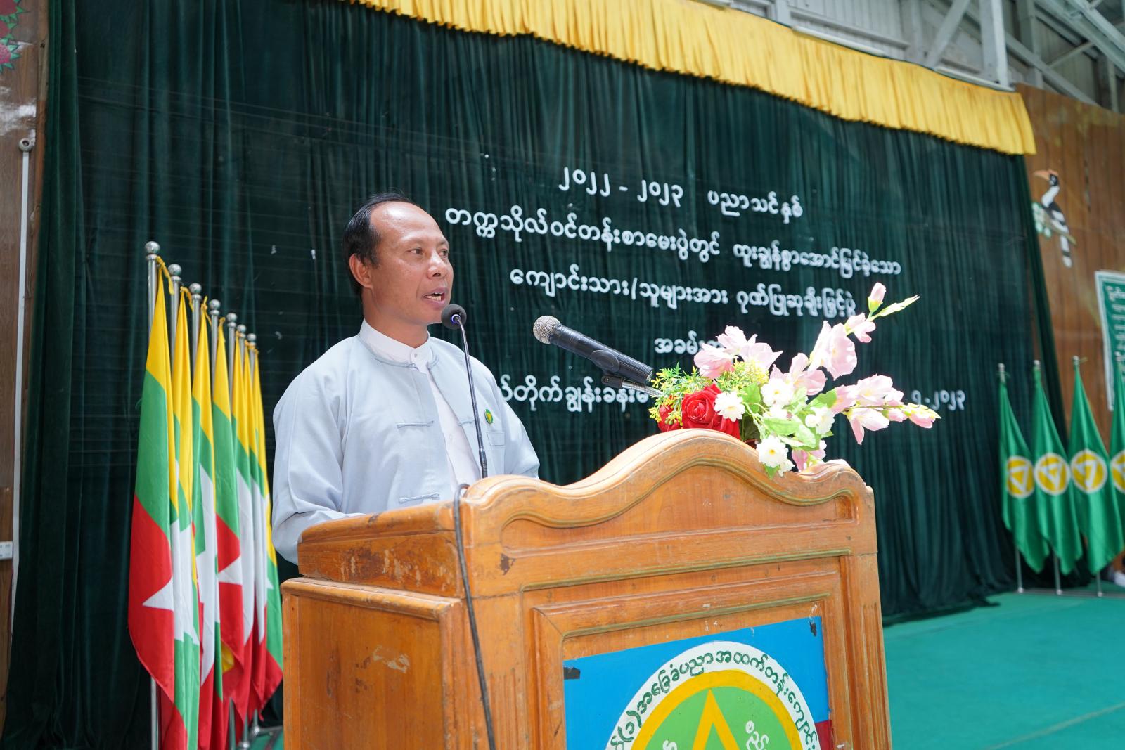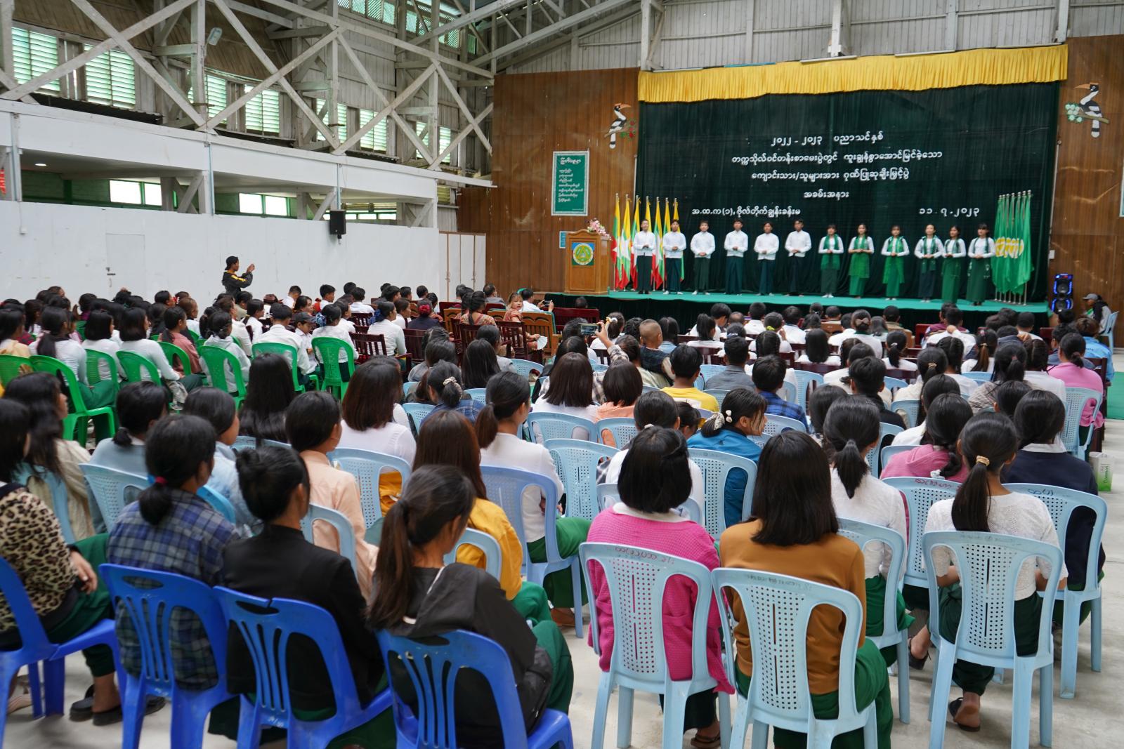 ၂၀၂၂−၂၀၂၃ ပညာသင်နှစ် တက္ကသိုလ်ဝင်တန်းစာမေးပွဲတွင ထူးချွန်စွာအောင်မြင်ခဲ့သော ကျောင်းသား/ ကျောင်းသူများအား မြို့နယ်အဆင့် ဂုဏ်ပြုဆုချီးမြှင့်ပွဲ အခမ်းအနားကို ယမန်မွန်းလွဲ ၁ နာရီက ဟားခါးမြို့၊ အမှတ်(၁)အခြေခံပညာအထက်တန်းကျောင်း၊ ဗိုလ်တိုက်ချွန်းခန်းမ၌ ကျင်းပရာ ရှေးဦးစွာ အမှတ်(၁) အခြေခံပညာအထက်တန်း ကျောင်းသား/ သူများမှ “မြန်မာ့ကျောင်း” သီချင်းဖြင့် သီဆိုကြပြီး မြို့နယ်ပညာရေးမှူး ဦးထလာချိုမ်က အဖွင့်အမှာစကား ပြောကြားသည်။