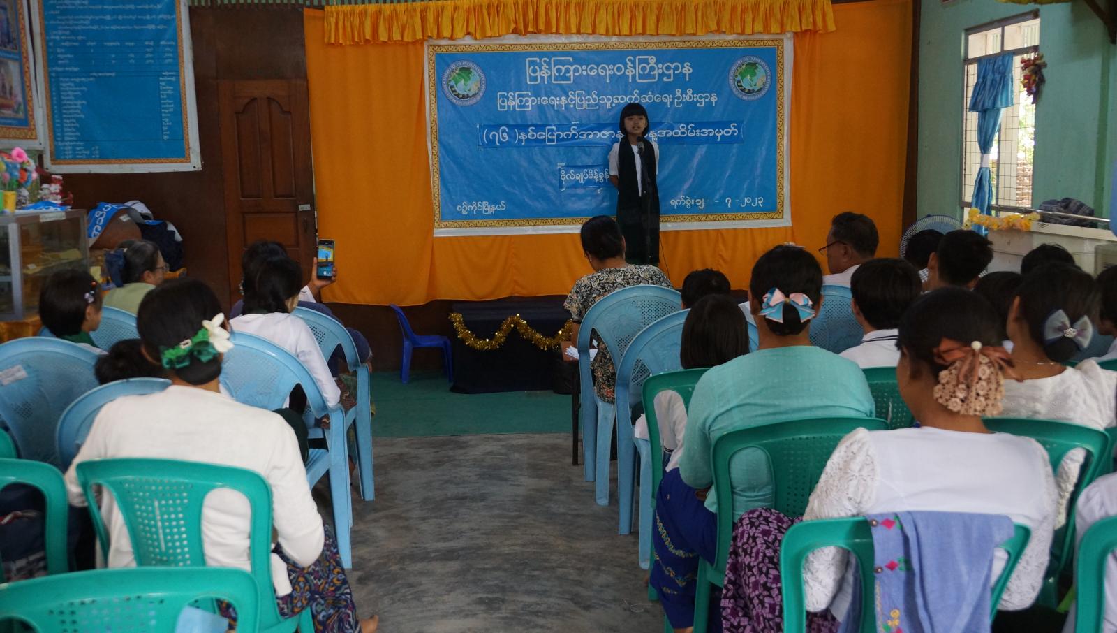 ဆက်လက်၍ ဗိုလ်ချုပ်မိန့်ခွန်းပြော ပြိုင်ပွဲကိုကျင်းပရာပြိုင်ပွဲဝင် ကျောင်းသား/ကျောင်းသူ(၁၁)ဦးဝင်ရောက် ယှဉ်ပြိုင်ခဲ့ကြပြီး အခမ်းအနားသို့ တက်ရောက် လာသော ကျောင်းသား/ကျောင်းသူများ၊ ဆရာ/ဆရာမများနှင့် ကျောင်းသားမိဘများက ပြန်ကြားရေးနှင့်ပြည်သူ့ဆက်ဆံရေးဦးစီးဌာနမှ ပြသထားသော ကလေး အလုပ်သမားပပျောက်ရေး အသိပညာပေးများ၊ သဘာဝဘေးအန္တရာယ်ဆိုင်ရာများ၊ လူကုန်ကူးမှုအန္တရာယ် တားဆီးကာကွယ်ရေး အသိပညာပေး နံရံကပ် စာစောင်များအား စိတ်ပါဝင်စားစွာ ကြည့်ရှုခဲ့ကြကြောင်း သိရသည်။