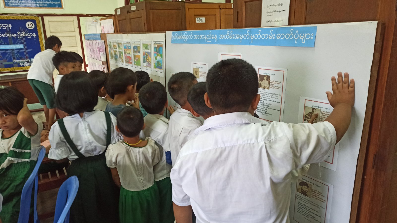 ယင်းနောက် ကျောင်းသား၊ ကျောင်းသူများ အသိပညာဗဟာသုတရရှိစေရန် (၇၆) နှစ်မြောက် အာဇာနည်နေ့ အထိမ်းအမှတ်အဖြစ် အာဇာနည်ခေါင်းဆောင် (၉) ဦးတို့၏ မှတ်တမ်းဓာတ်ပုံများ၊ အာဇာနည်ခေါင်ဆောင် (၉)ဦး လုပ်ကြံခံရသည့် အသိပညာပေး ကာတွန်း ပိုစတာများ၊ လူကုန် ကူးမှုတားဆီးကာကွယ်ရေး အသိပညာပေး နံရံကပ်ဘုတ်များ ခင်းကျင်းပြသ ထားရာ ကျောင်းသား၊ ကျောင်းသူများ စိတ်ပါဝင်စားစွာ ကြည့်ရှုခဲ့ကြကြောင်း သိရသည်။